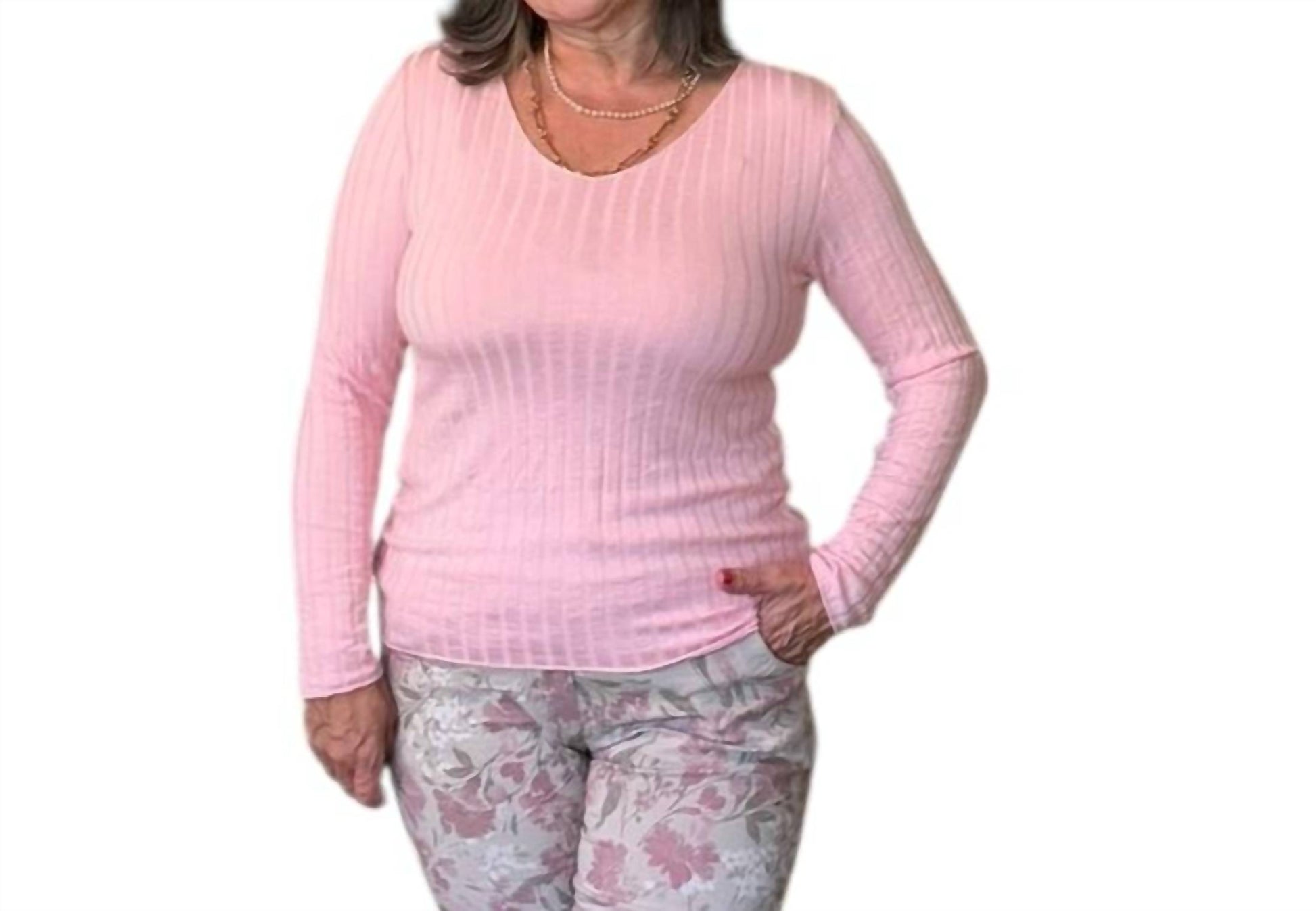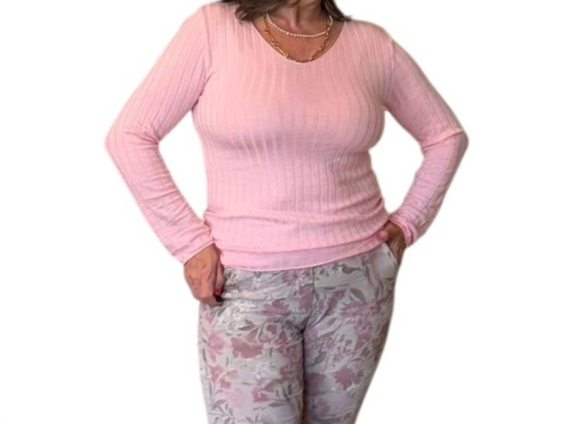 A long sleeve top you can wear with denim, skirts, well... just about anything! Introducing the Ultra Soft Everyday Rib Knit Top by Made in Italy, a stylish addition to your wardrobe in taupe. This top features long sleeves, a flattering V-neckline, and a subtle textured pattern for a sophisticated look. Crafted from a viscose blend (68% Viscose, 14% Polyester, 13% Nylon, 5% Elastane), it is designed for comfort and versatility during summer and Thanksgiving occasions. With a pull-on closure, it easily fits US sizes 4 to 12, and care is hassle-free with machine wash and line dry instructions.