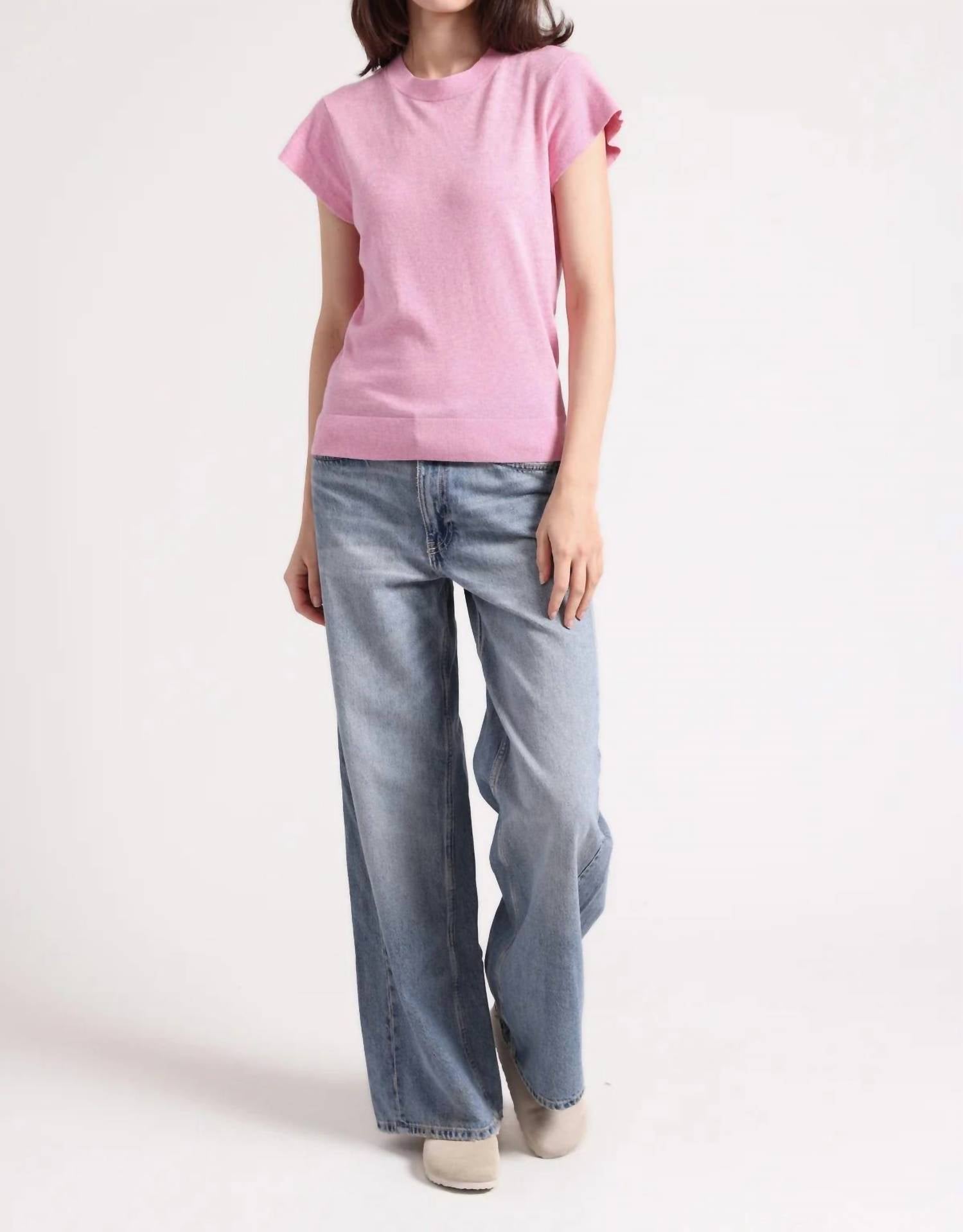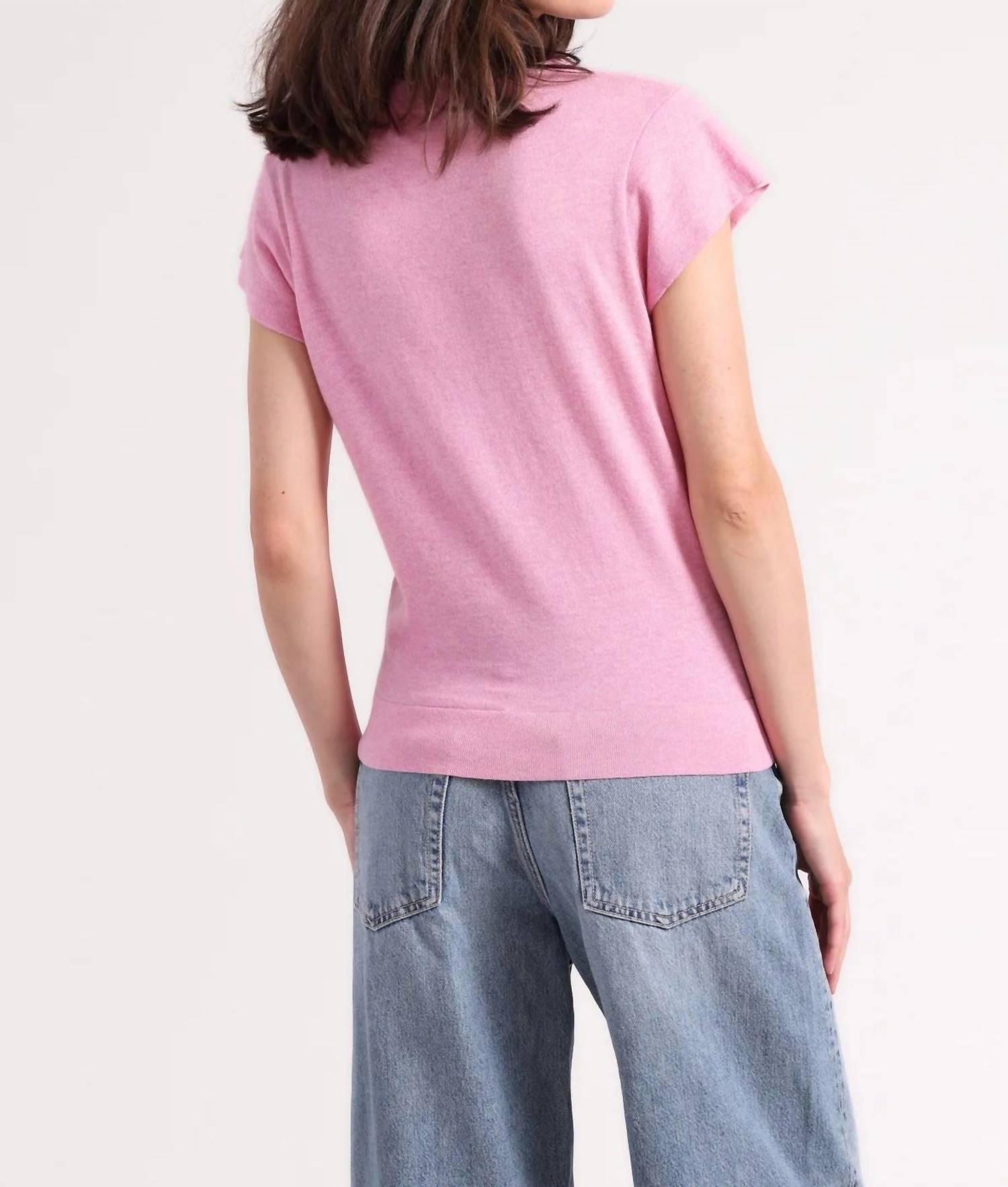 This classic, short sleeve tee will be your go-to staple this season and beyond. Introducing the Supima Cotton Cap Sleeve Crew Neck Tee by Minnie Rose, a stylish essential in a delightful pink hue. Crafted from an 85% cotton and 15% cashmere blend, this tee offers a soft, breathable feel with a luxurious touch. Featuring feminine cap sleeves and a classic crew neckline, it is perfect for versatile styling. Care is easy with options for dry cleaning or machine washing. Closure: Pull on.