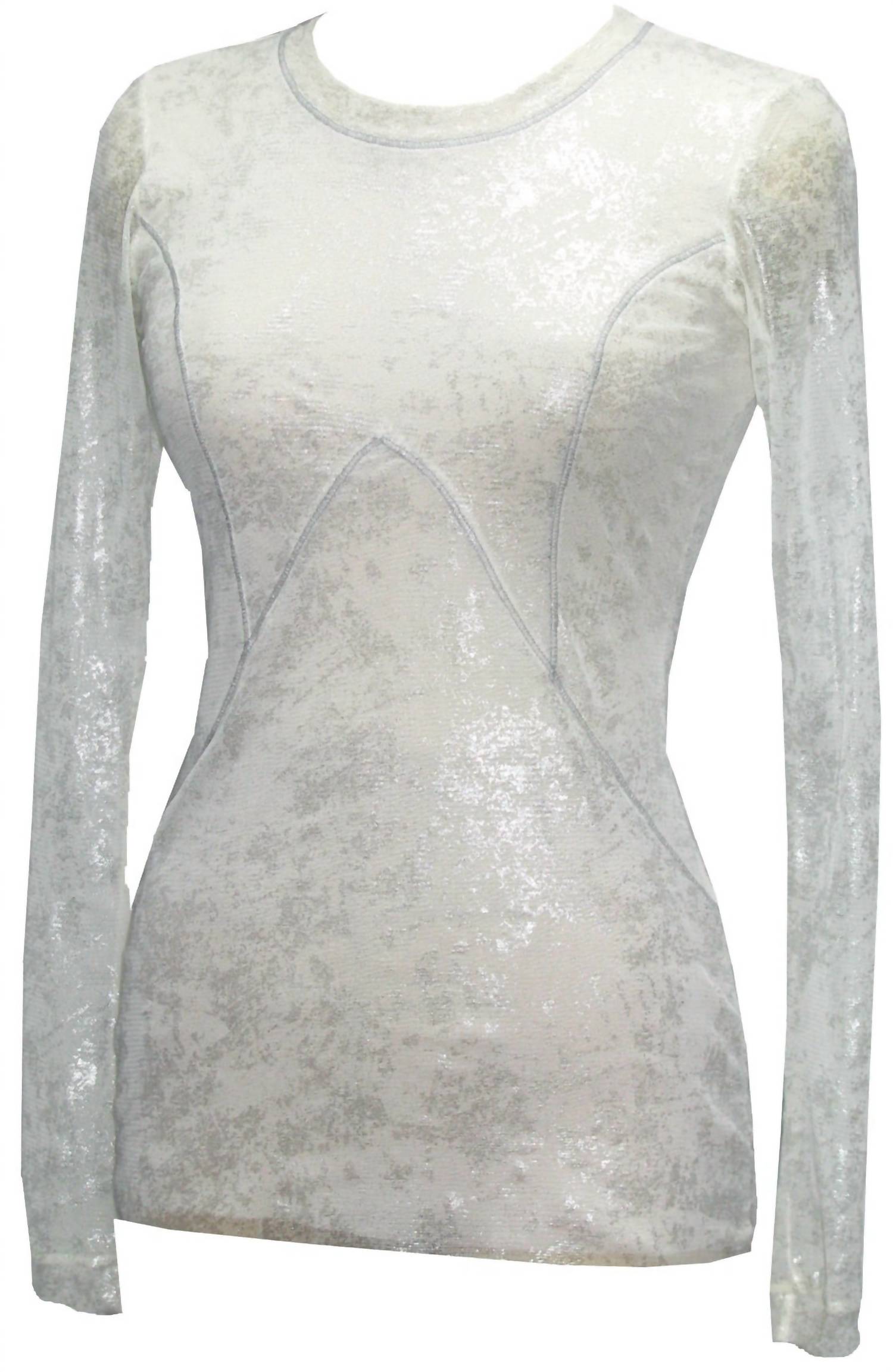 Great fit, cute design, soft fabric. You'll love everything about this long sleeve tee. Discover the Crew Neck Long Sleeve Mesh Tee by Petit Pois By Viviana G, a must-have for your vacation wardrobe with its boho chic vibe. Crafted from 100% nylon mesh, this very fitted top features double-layered body mesh for added structure and single-layer sleeves for a delicate touch. Available in a versatile white color, it’s perfect for layering under a tank or a dress to provide light arm coverage with a personalized style through raw edges. Closure is pull-on, and for care, it is best machine washed in cold on a gentle cycle and line dried.