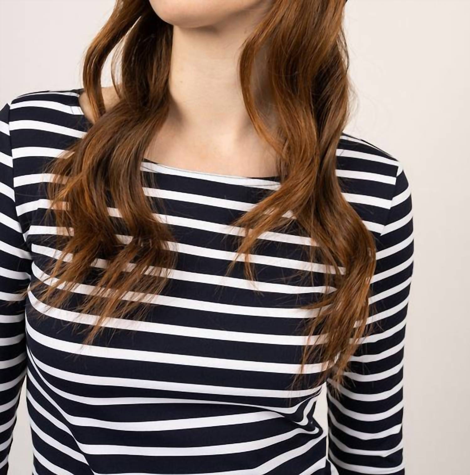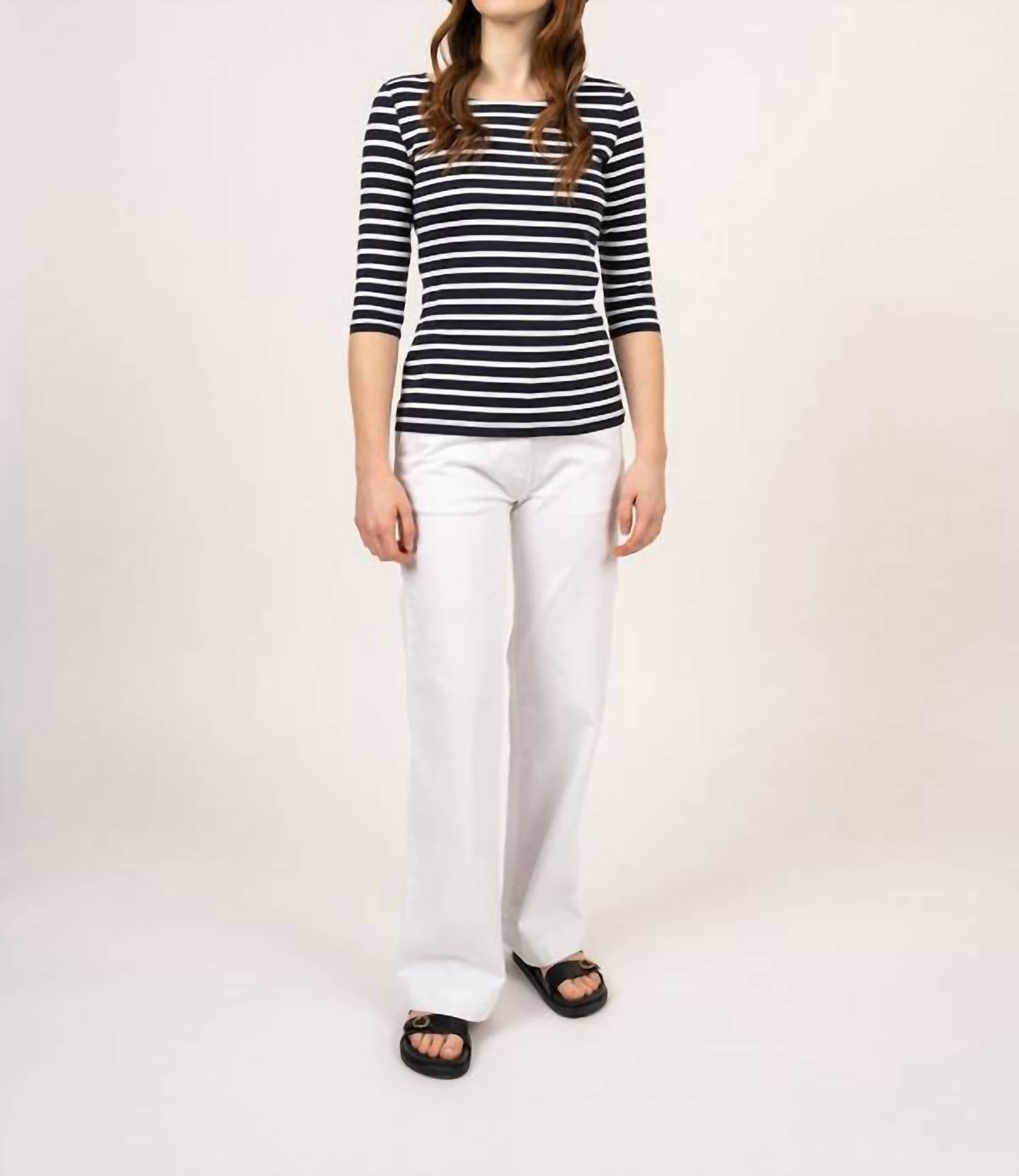 Great fit, cute design, soft fabric. You'll love everything about this long sleeve tee. Elevate your spring wardrobe with the Garde-Côte Anti-UV Shirt by SAINT JAMES, a stylish twist on the classic striped sailor design. This navy/neige creation boasts three-quarter sleeves and a casual round neckline for a chic yet sporty aesthetic. Crafted from breathable and UV-resistant fabric, the shirt is composed of 91% polyamide microfibre and 9% elastane, measuring a length of 61 cm. Its pull-on closure ensures comfort and ease, and with machine wash care, it's effortlessly stylish and functional.