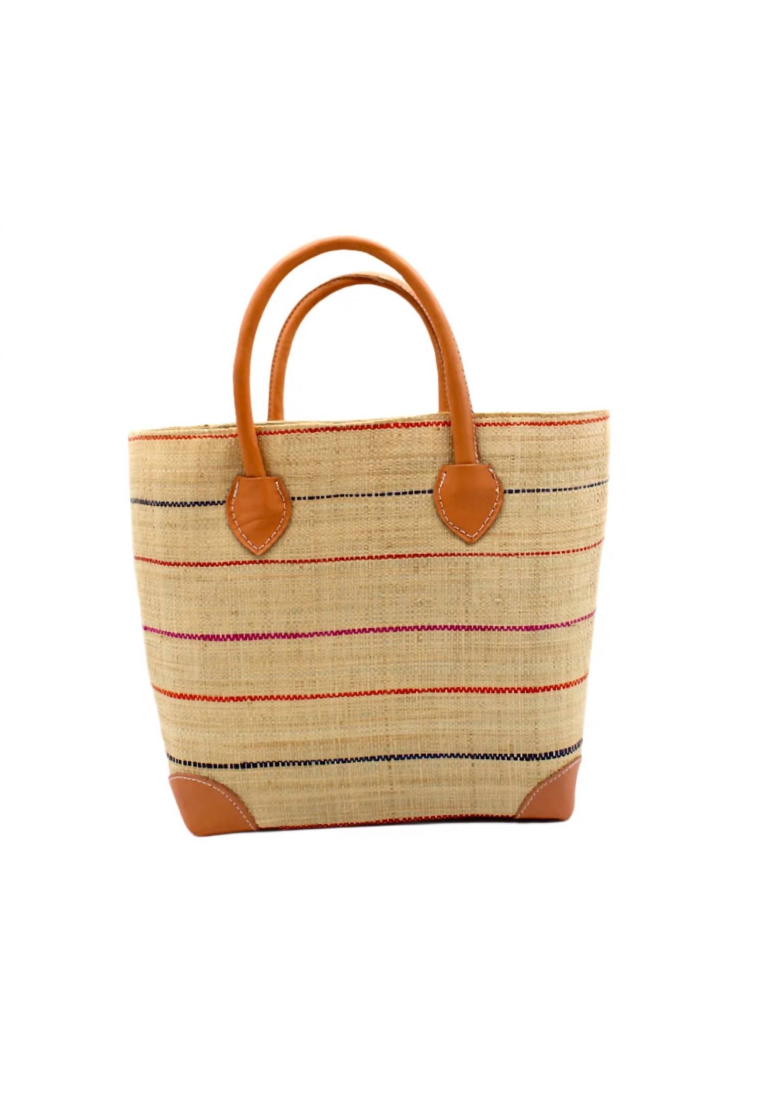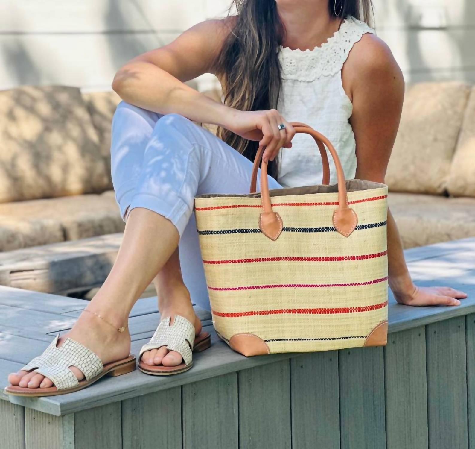 The perfect throw-it-in-and-go bag for your next weekend away or beach vacation! Its classic design will never go out of style and you'll be reaching for this bag season after season. Introducing the Augustine Straw Basket Bag by Shebobo, a finely crafted tote that combines functionality with style. Made from hand-loomed raffia palm fiber, this bag comes in a rich tobacco color, featuring leather handles and feet for added durability. Its drawstring closure ensures secure access, while an inner pocket provides convenient storage. With dimensions of 17"x8.5"x13.5", it's the perfect accessory for monogram personalization and everyday chic.