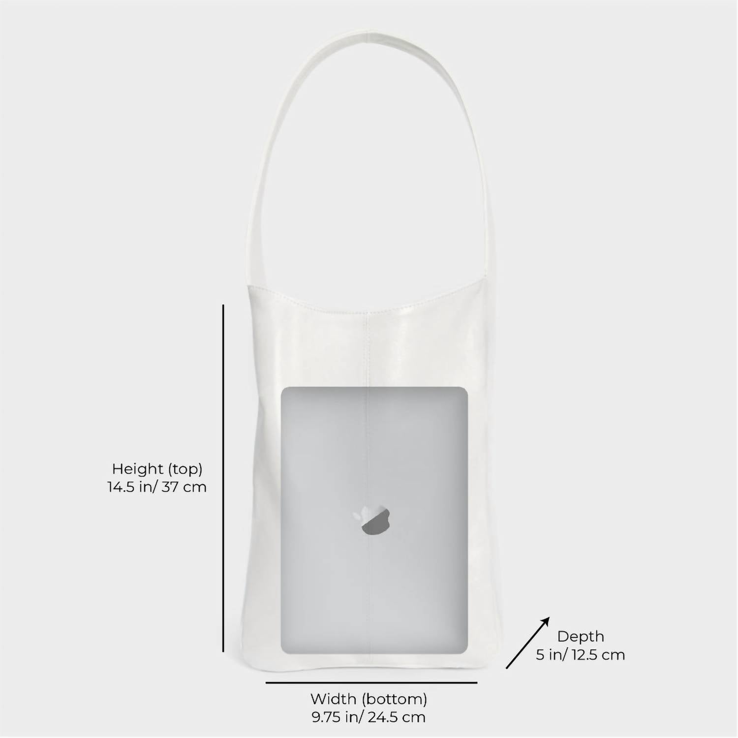 Aside from being the cutest bag ever, this tote is the perfect size to hold all of your vacation necessities. Pair this adorable bag with a flowing dress and some slides and you're all set! Meet the Women's Billie Tote Bag by Lemiz, the ultimate accessory for the modern professional. This sleek and timeless black tote is handcrafted in Los Angeles with a roomy interior to fit a 13-14" laptop comfortably. Featuring an inside pocket for organization and a secure magnetic closure, this bag is just as practical as it is stylish. Dimensions: 14.5" height, 9.75" width, and 5" depth, with a cotton canvas lining that adds an extra layer of sophistication.