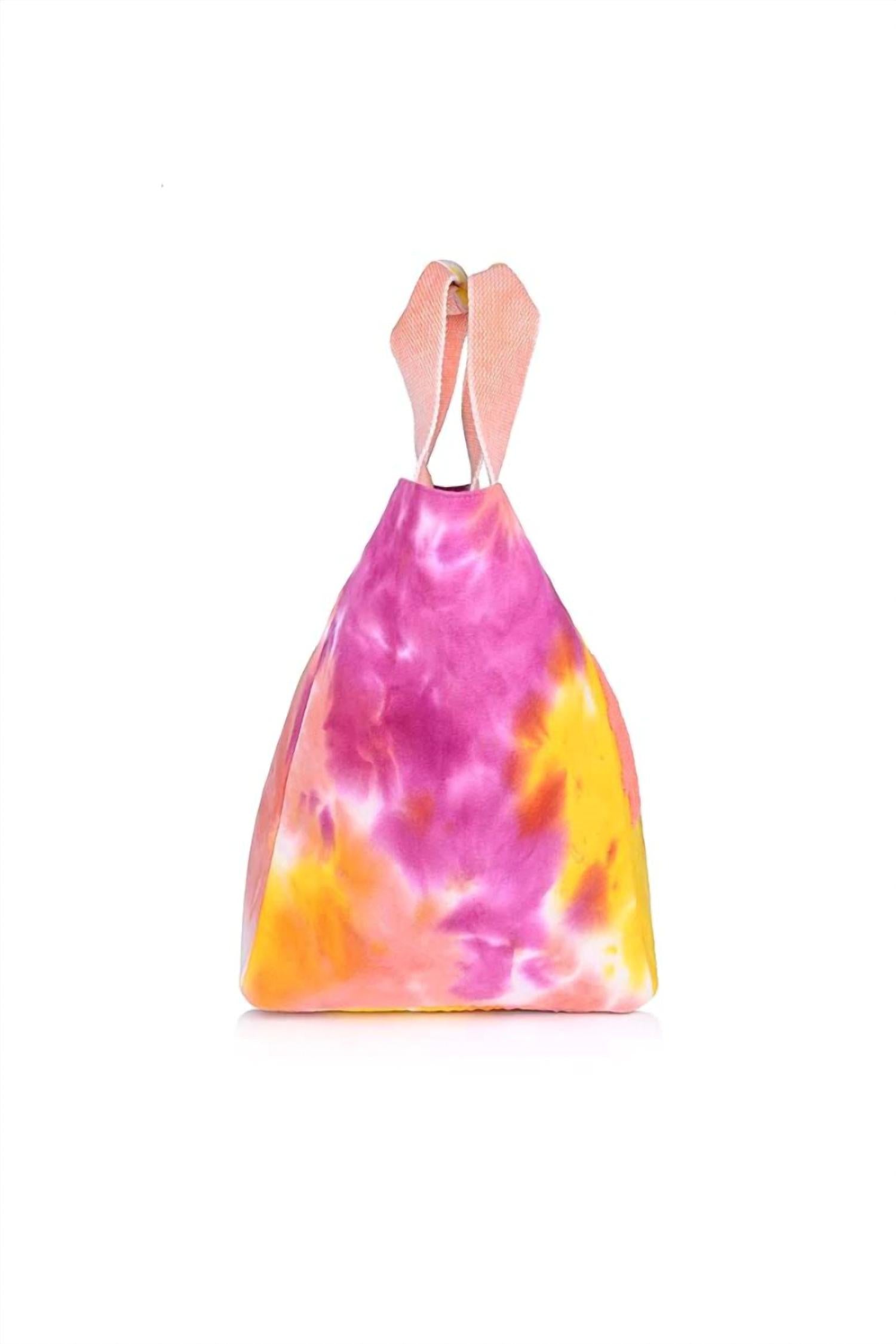 The perfect throw-it-in-and-go bag for your next weekend away or beach vacation! Its classic design will never go out of style and you'll be reaching for this bag season after season. Multi-purpose tote. Beautiful made in canvas with tie dye technique.Vacay embroidered in front. Lined interiors with a zip pocket. Magnetic button closure. Size: 11" x 13" x 11".