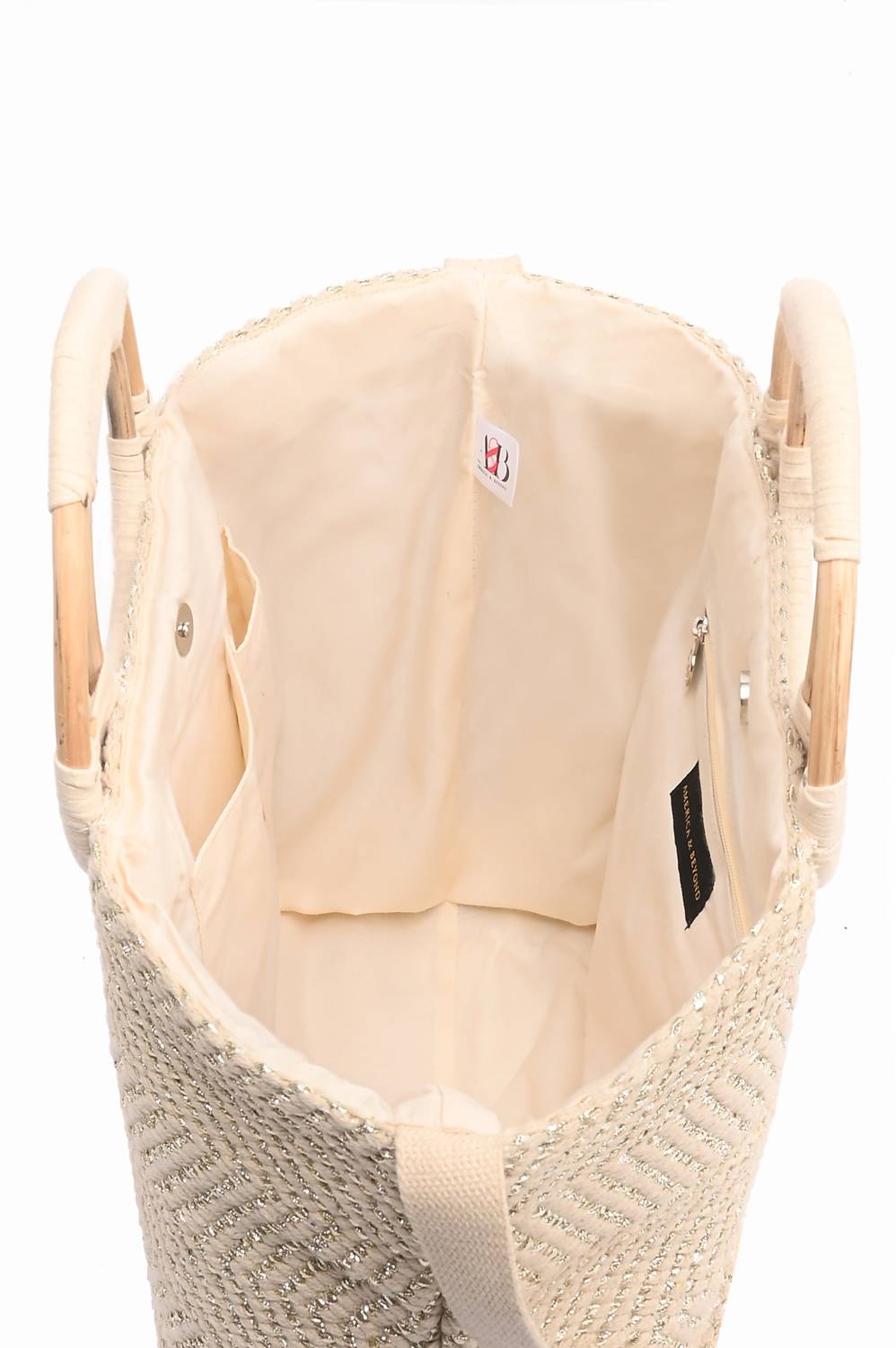 America & Beyond - Women's Birch Lurex Durrie Cane Handle Hand Woven Large Tote