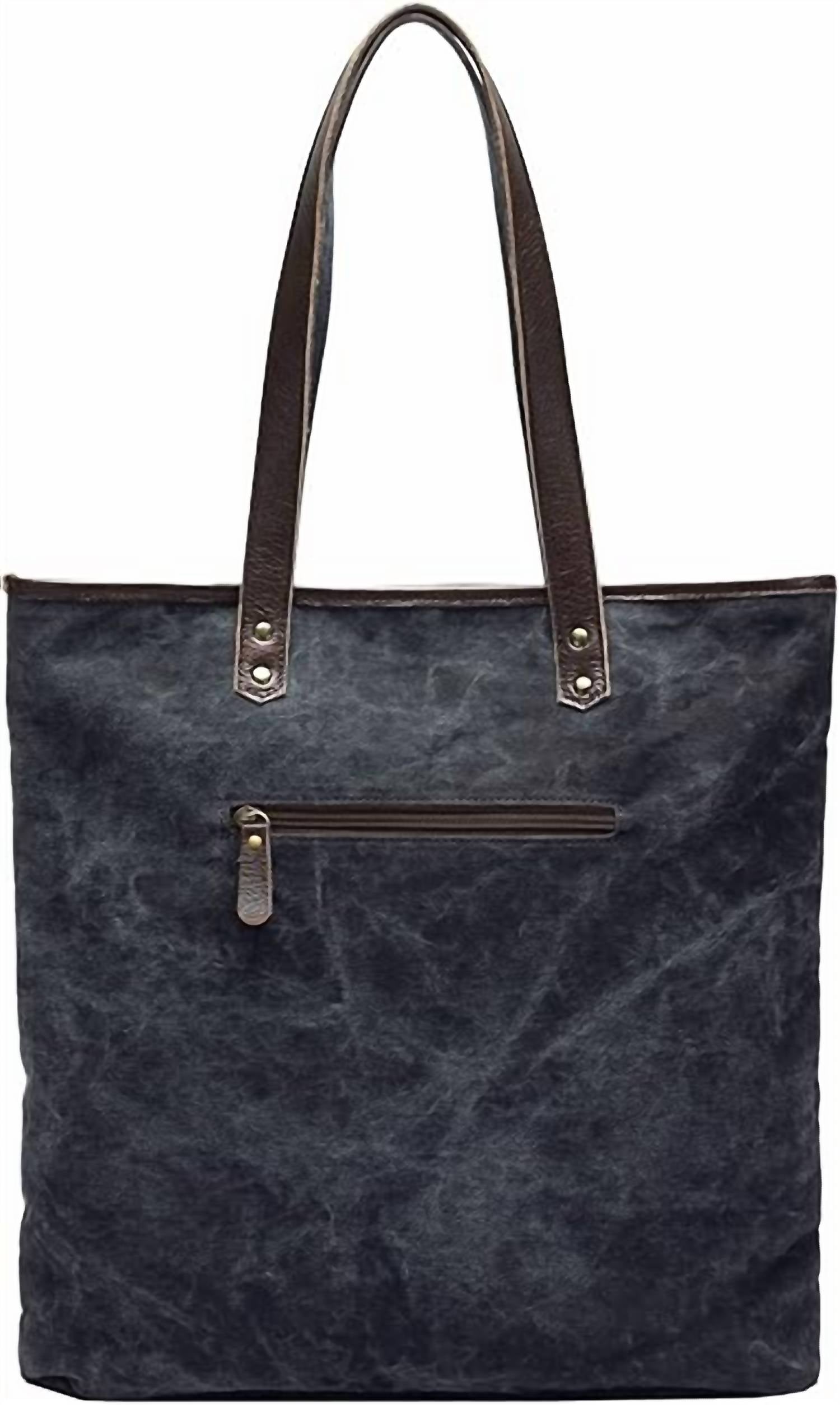 The perfect throw-it-in-and-go bag for your next weekend away or beach vacation! Its classic design will never go out of style and you'll be reaching for this bag season after season. Embrace timeless elegance with the Women's Amazilia Tote Bag by Anngoti, crafted from premium brown leather and vintage canvas. This classic tote boasts a 15"x16"x4" design adorned with hand-printed patterns and engraved floral motifs. It includes multiple zippered pockets for practicality, along with one interior zip pocket and two interior slip pockets to keep essentials organized. Featuring a secure zipper closure and antique silver stud detailing, each bag's unique pattern ensures individuality in every piece.