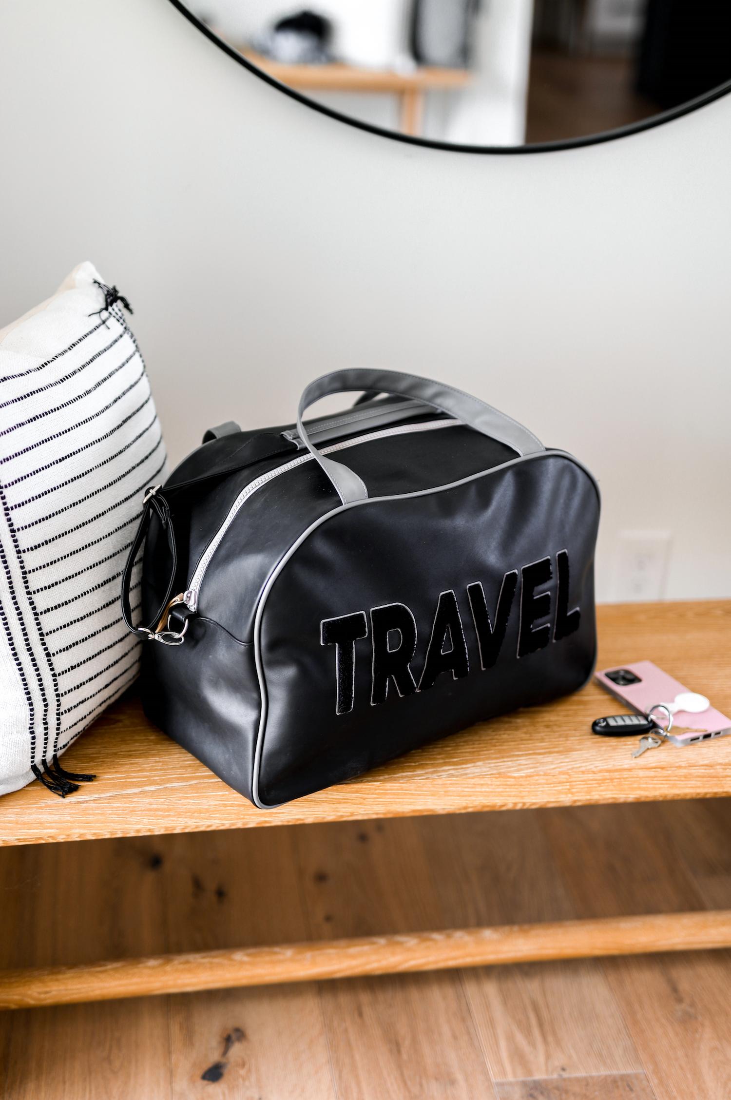 Enhance your travel experience with this sophisticated travel bag, thoughtfully designed to provide ample storage and effortless organization. Its stylish appearance and durable construction make it the perfect companion for any journey. Elevate your travel essentials with the Women's Travel Weekender Duffle Bag by Jadelynn Brooke, available in chic black and grey. Crafted from 100% vegan leather with a 100% polyester lining, this spacious duffle measures 18.5" W x 13" T x 9" D, ensuring ample space for your belongings. The design includes top handles measuring 9.5" and a crossbody strap extending up to 43", along with a convenient internal zipper pocket.