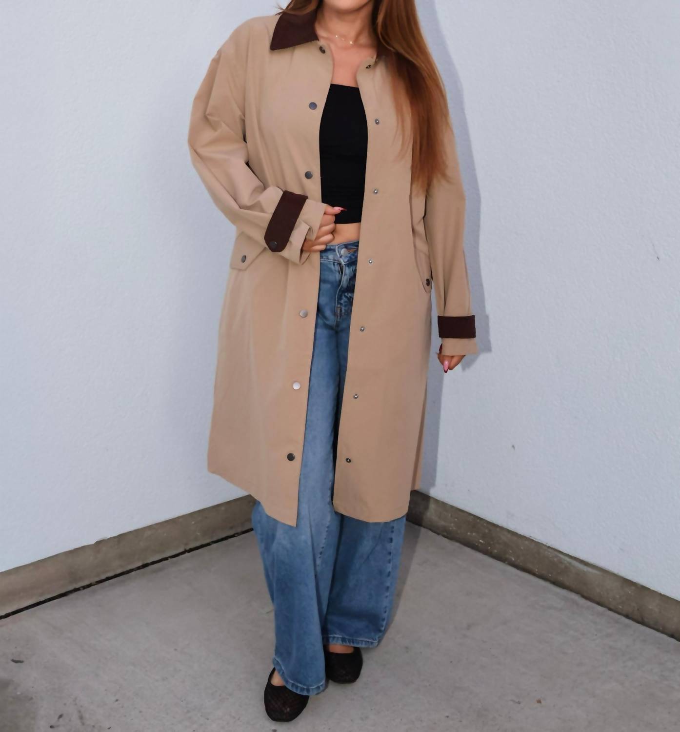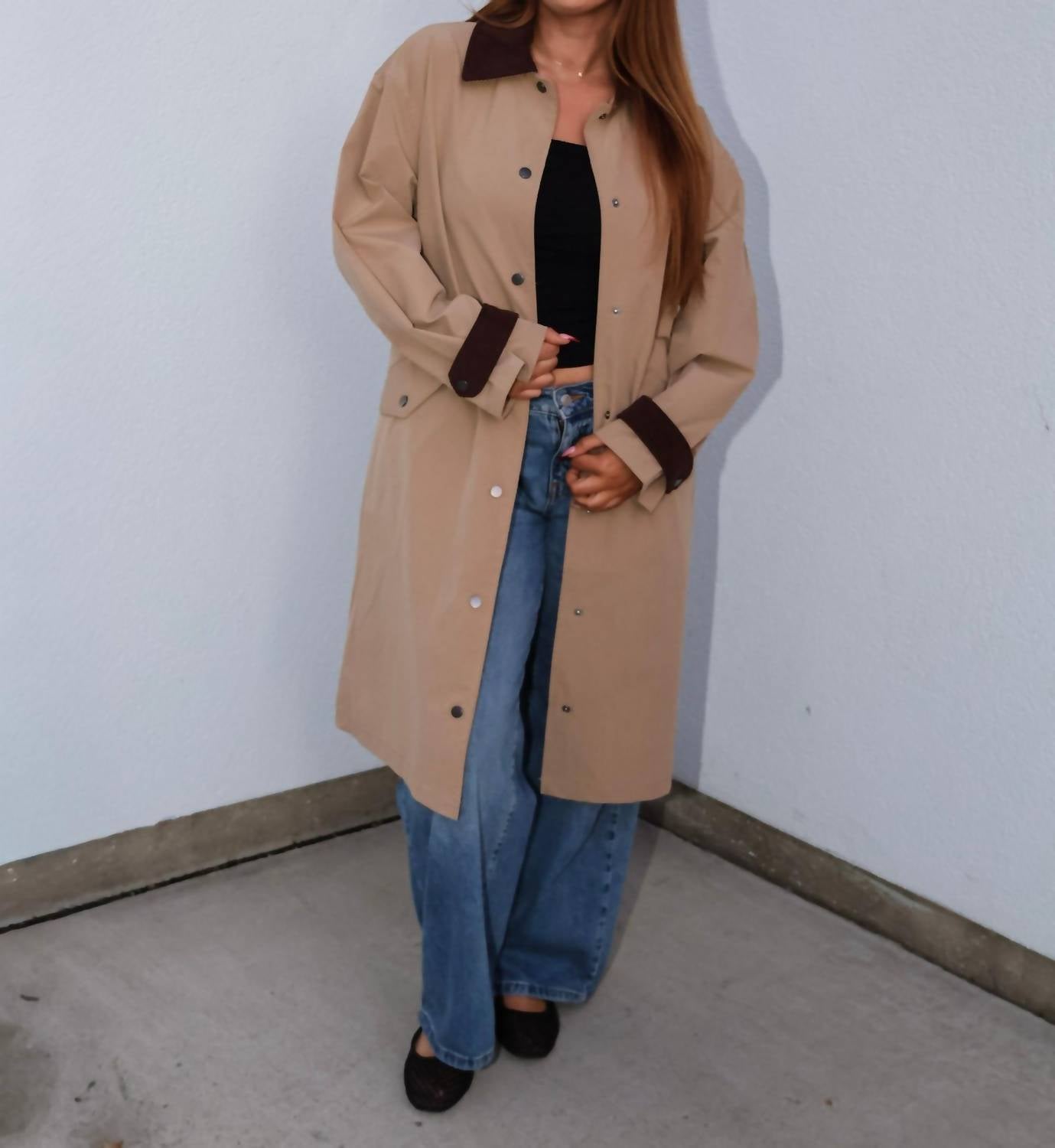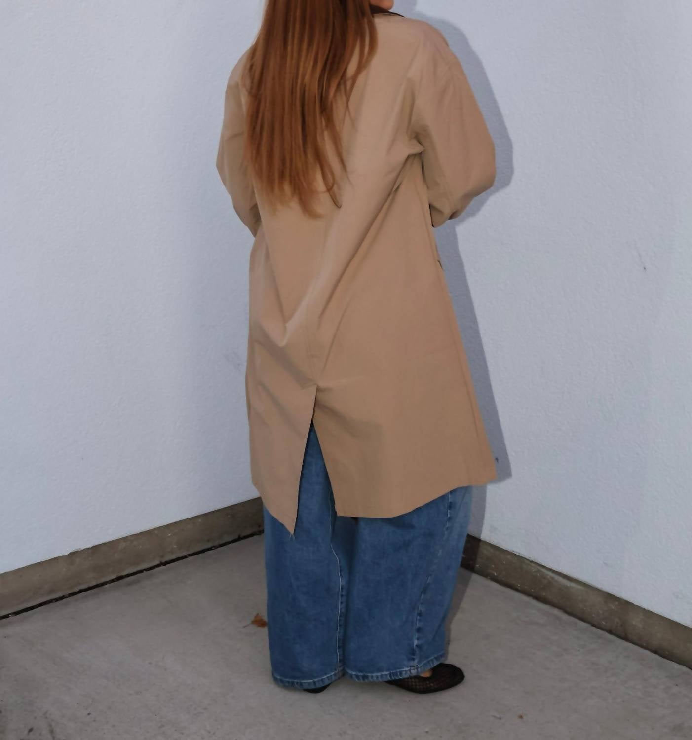 A timeless classic. You'll be reaching for this trench every season. Introducing the Active Basic Theodella Trench Coat, an elegant taupe trench designed for the minimalist in mind. This coat features long sleeves with adjustable cuffs, a chic contrast collar, and a relaxed longline fit perfect for layering. Made from 100% polyester, it boasts a sleek snap button closure. Care is effortless with machine wash and tumble dry instructions. Both Kylie and Hope model this slightly oversized piece in size S.