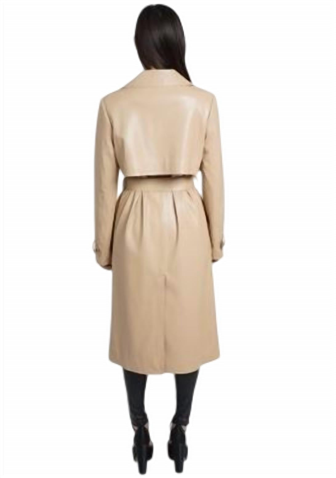 A timeless classic. You'll be reaching for this trench every season. Elevate your outerwear collection with the Carter Coat by LOVE TOKEN, a timeless piece in solid beige. This trench coat is crafted from premium faux leather, offering a sophisticated look and feel. It features a classic collar and long sleeves, detailed with a convenient button closure and practical pockets. Ideal for women, this coat combines style and utility seamlessly.