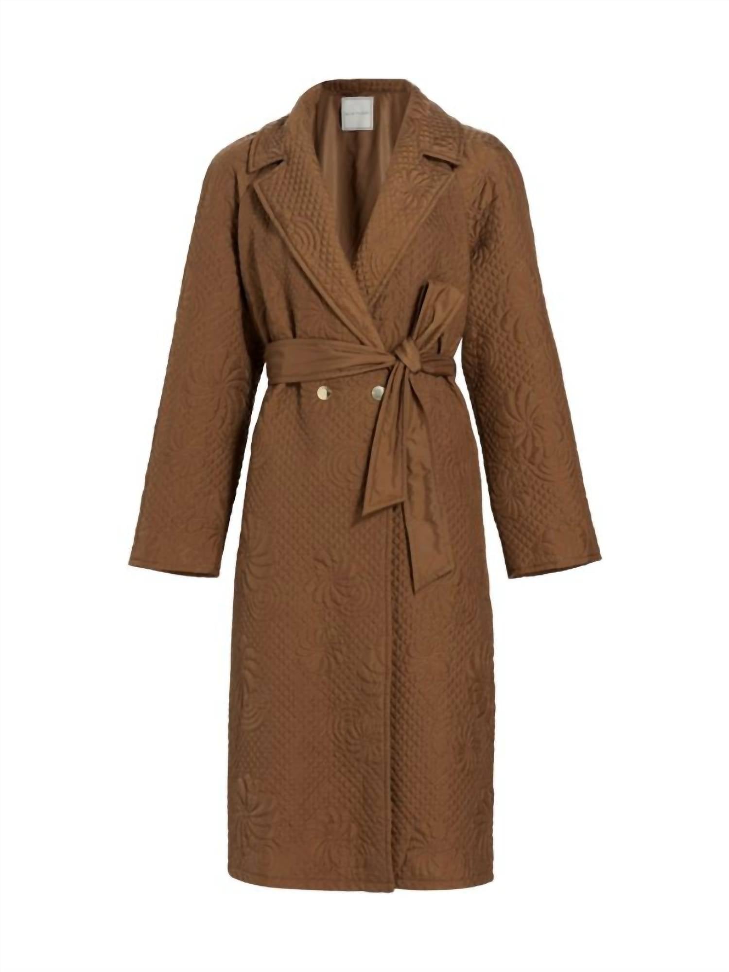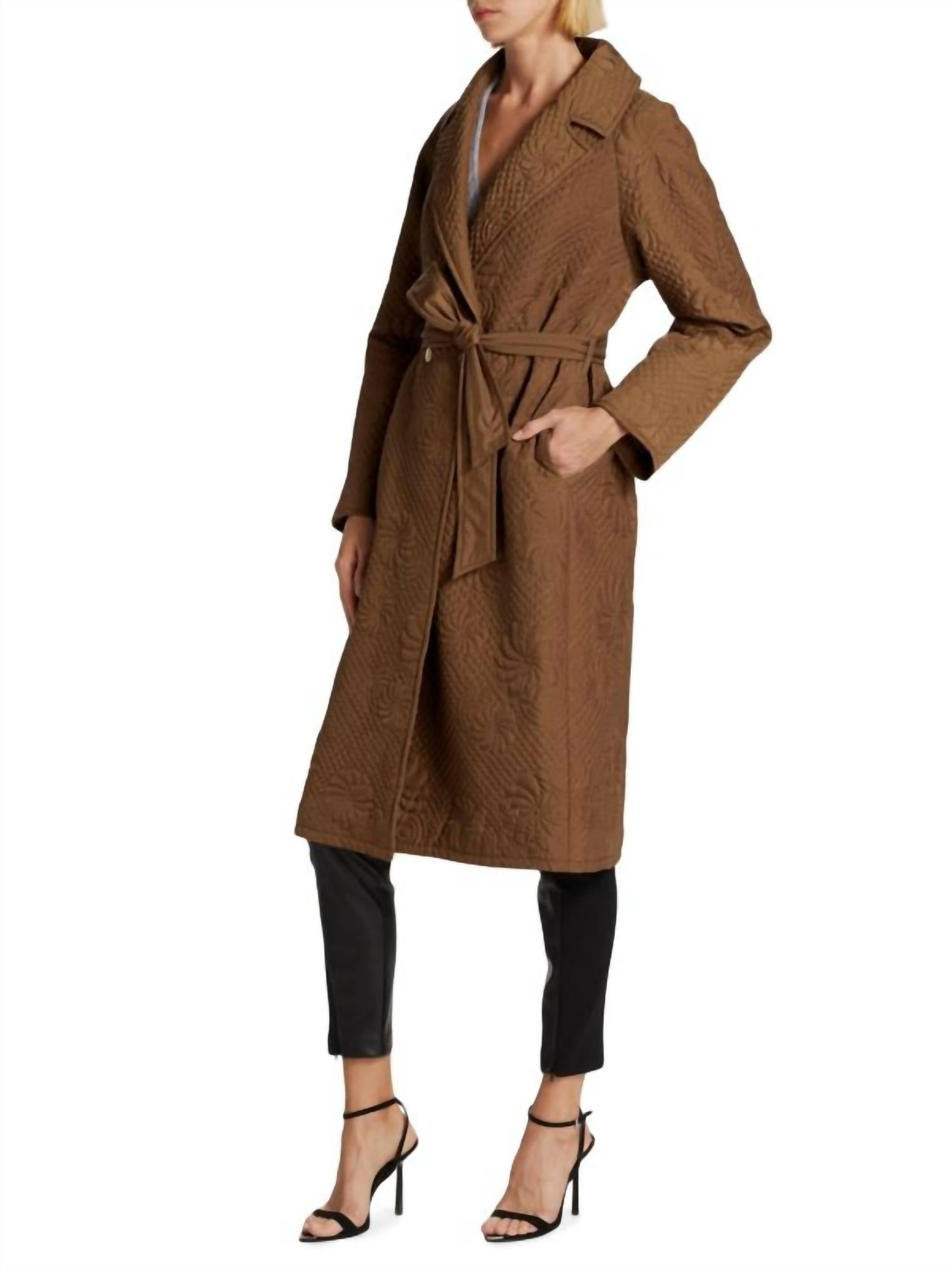 A timeless classic. You'll be reaching for this trench every season. This long belted coat features a beautifully stitched quilted floral pattern and a sleek snap-front closure accented with goldtone hardware. Designed with notch lapels, long raglan sleeves, and slant pockets at the waist, it blends elegance with everyday practicality. A tonal sash belt defines the silhouette, while the full lining ensures comfort. Crafted from polyester, it offers a refined and timeless outerwear option.