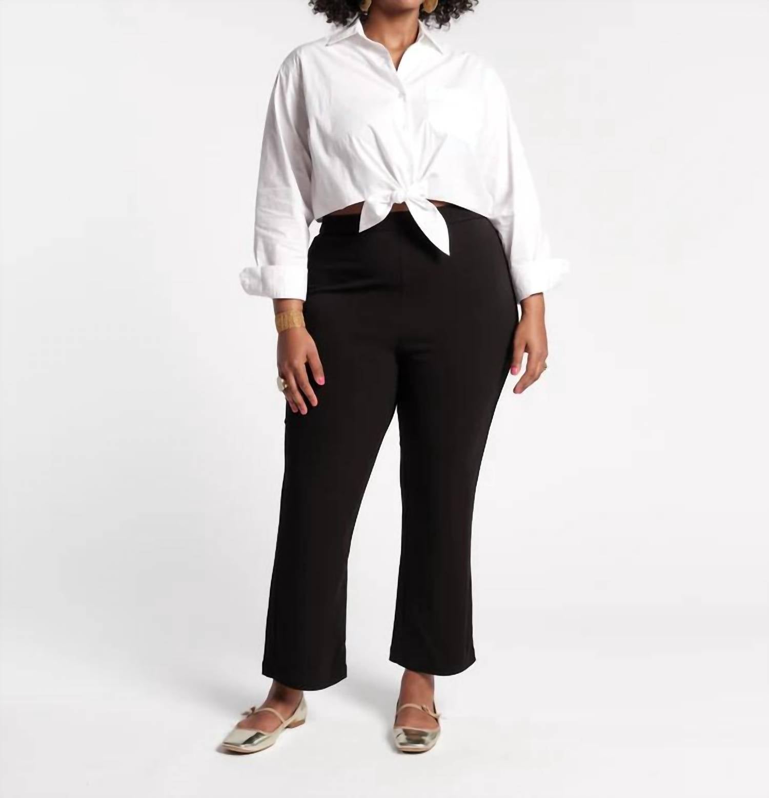 Experience the perfect blend of comfort and style with the Quincy Stretch Pant by Frances Valentine, tailored for women in classic black. These high-rise pull-on pants feature a skinny leg, slight boot cut, and are cropped at the ankle for a chic look. Made from a luxurious spandex-viscose blend, they offer a flattering fit with an elastic waistband and two back pockets. Ideal for both office settings and social gatherings, these pants ensure you feel as good as you look.