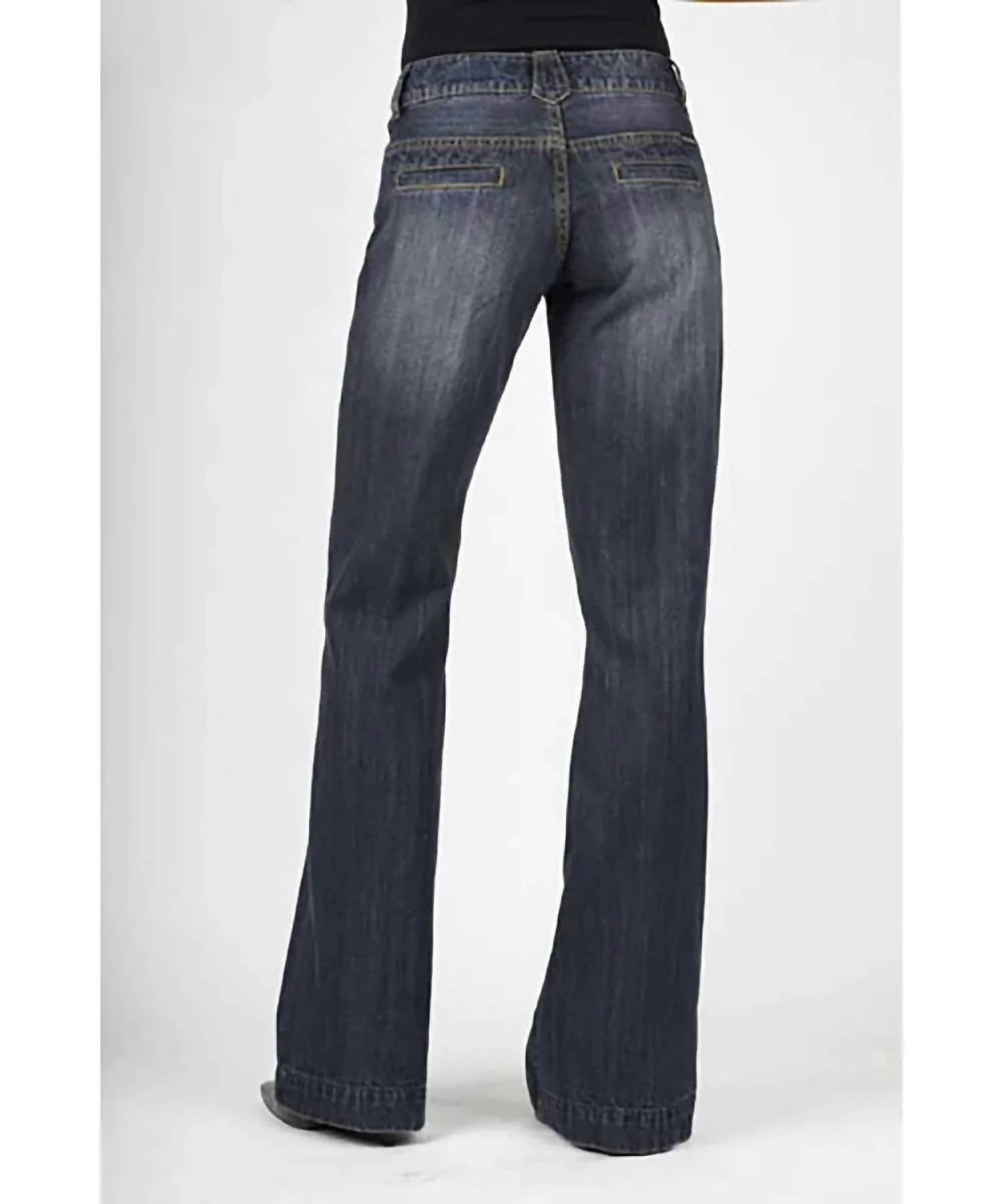 Introducing the Women's Bellville City Trouser by Stetson, designed for those who appreciate both style and comfort. These blue trousers feature a relaxed fit with a moderately fitted thigh and a slightly flared leg, perfect for a Western-inspired spring look. Made from 100% cotton, they boast a dark wash and two exposed button closure along the waist for a distinctive touch. Crafted for vacations and everyday wear, these trousers are recommended for hand washing, combining practicality with timeless style.