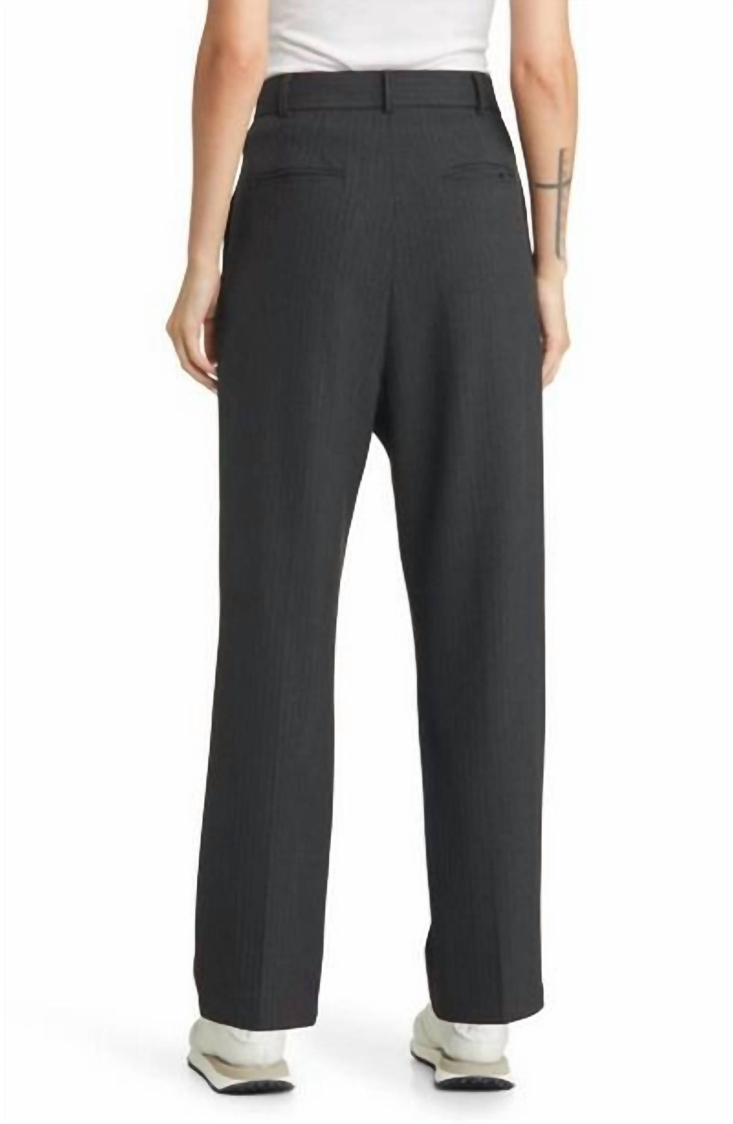 Elevate your wardrobe with the Pinstripe Pleated High Rise Trousers by Rails, a trusty blend of comfort and style. These trousers feature straight legs and front pleats, cut from stretch twill for a refined fit. Composition includes 65% Polyester, 33% Viscose, and 2% Spandex, with cotton-lined pockets for added comfort. Details such as the inseam of 27.75", a front rise of 15", and a waist measurement of 16" complete this menswear-inspired essential.