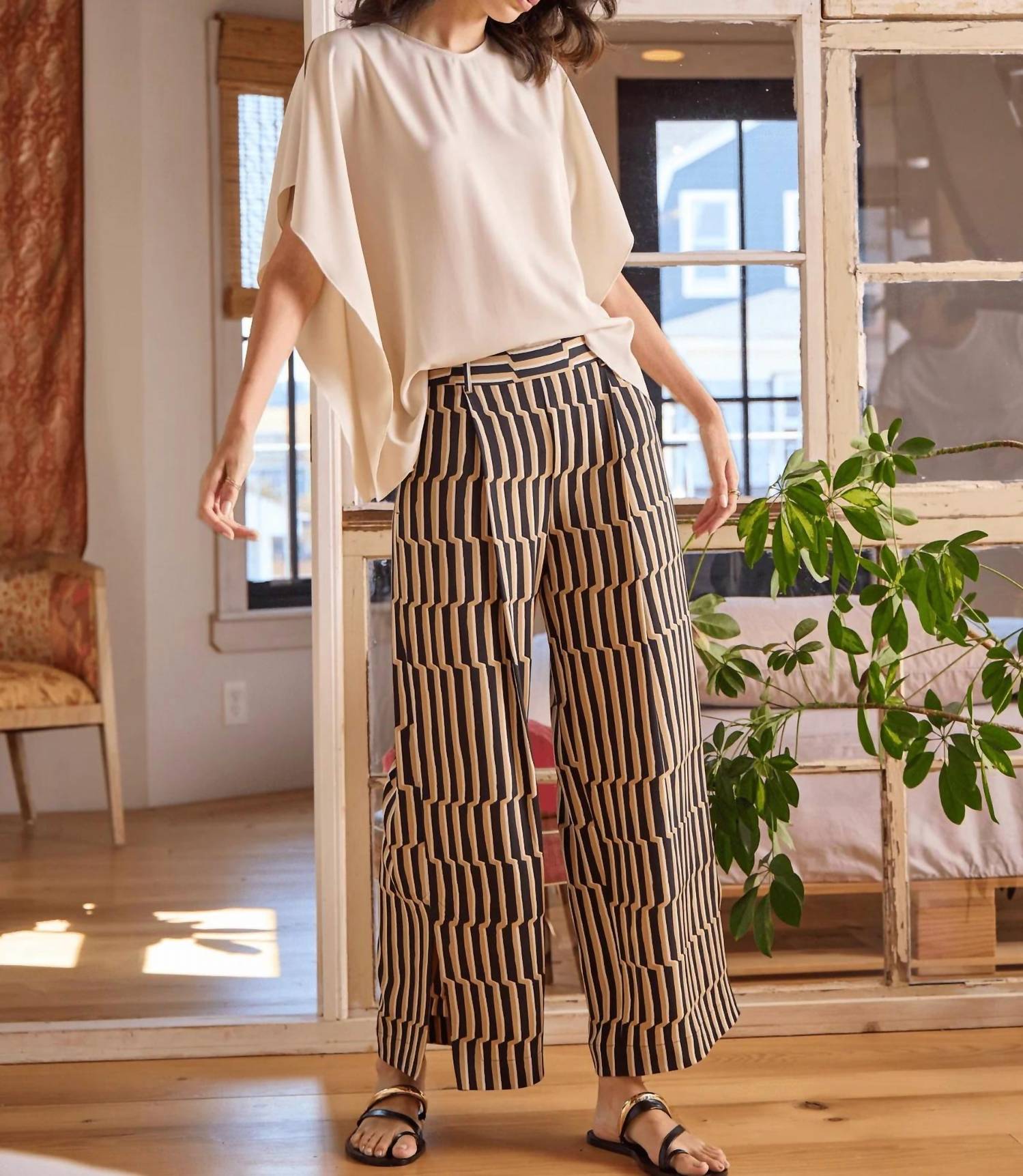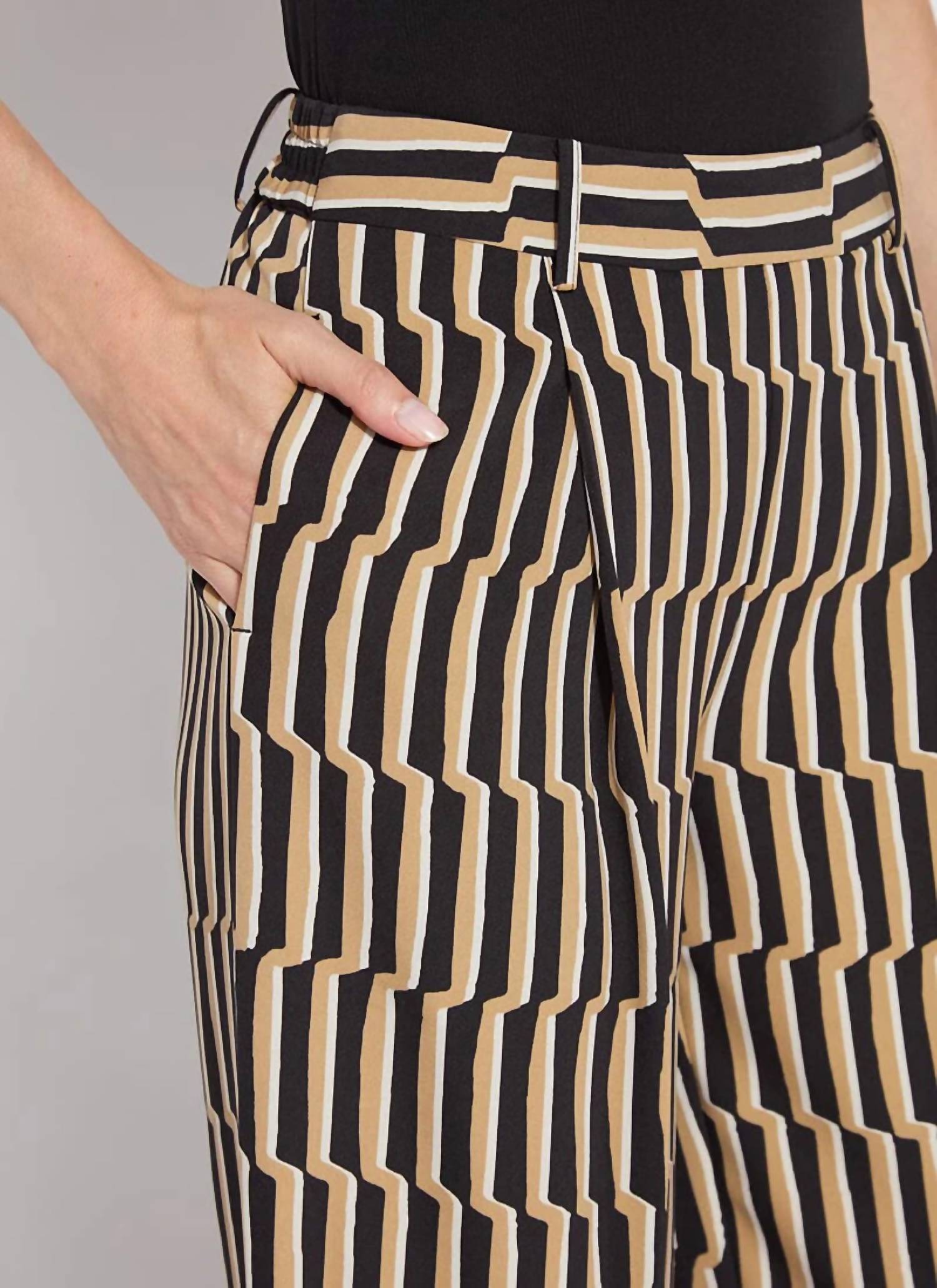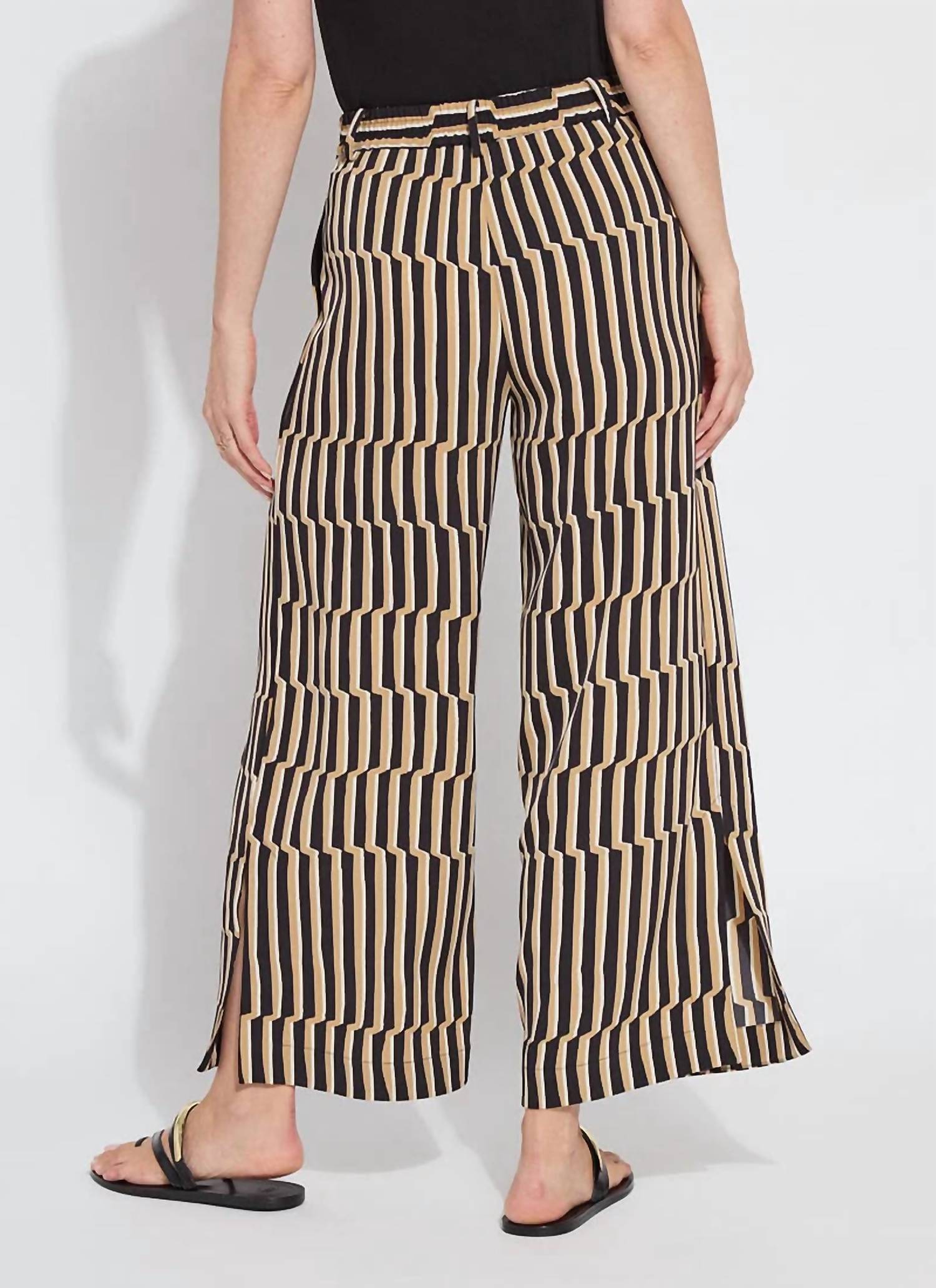 Elevate your vacation wardrobe with the Santana Pleated Trousers by Lysse, a chic option for the modern woman. These brown, wide-leg beauties boast a clever stripe pattern and are crafted from 95% Polyester and 5% Elastane, offering both comfort and style. Designed with deep front pleats and functional side pockets with mesh facing, the trousers are fitted at the waist with an elasticated back for a flattering fit that skims the hips. Whether paired with a basic tank or sandals, these trousers are the perfect spring staple for any getaway.