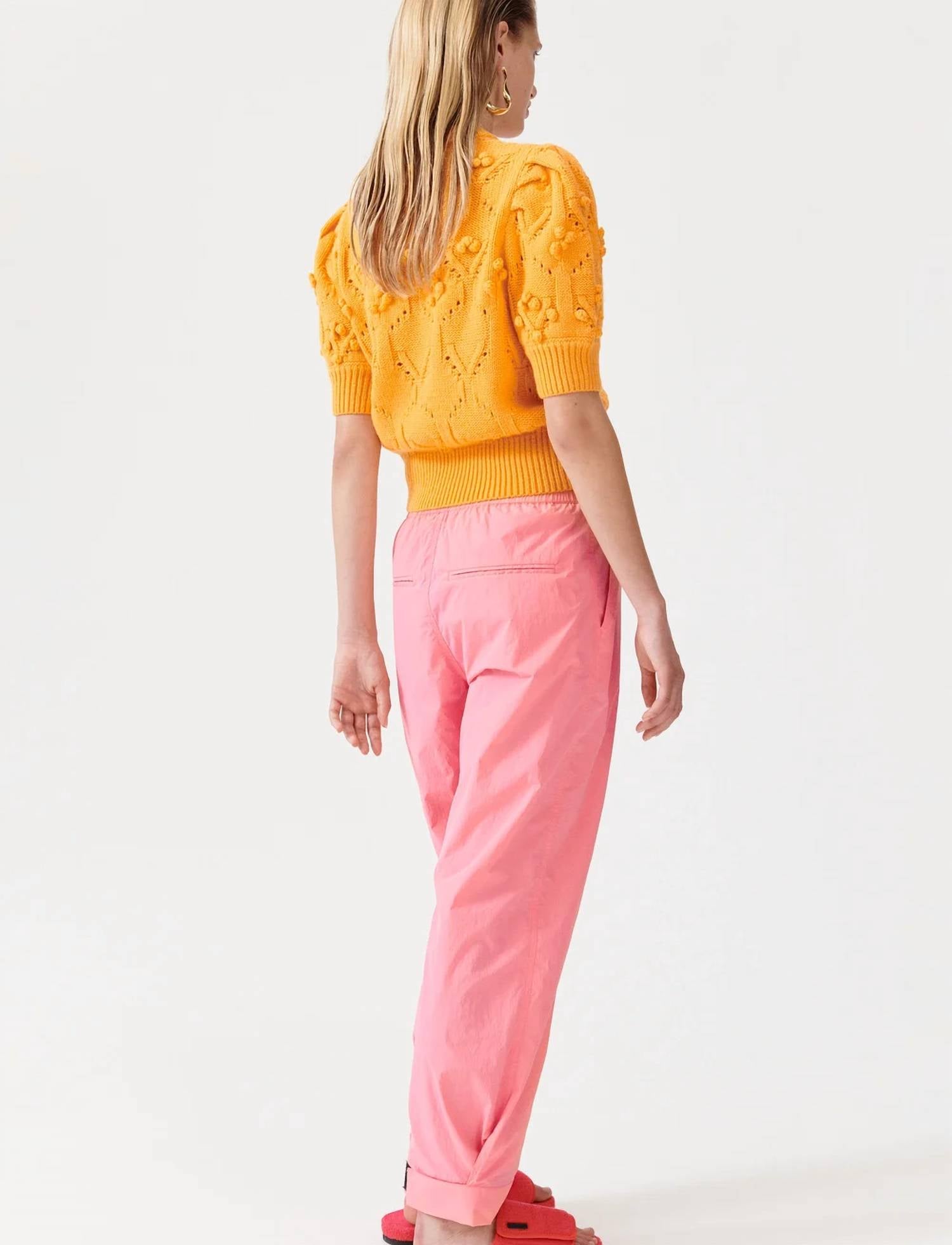 Introducing the Nipo Straight Leg Pants by BAUM UND PFERDGARTEN, a chic addition to your spring wardrobe, perfect for a music festival or Easter celebration. These pink trousers are crafted from 100% recycled polyamide, offering a relaxed fit with a high-rise design for ultimate comfort. They feature a tie closure, straight leg, and come with practical pockets. Embrace a touch of 90s fashion with this versatile piece, ideal for any stylish occasion.
