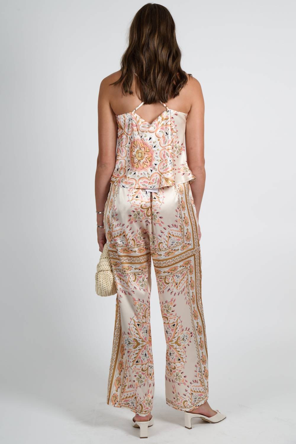 Celebrate vibrant style with the Melody Pant by LUCY PARIS, perfect for any holiday party. These wide-leg trousers feature a graphic multi-color design with a high-rise, relaxed fit. Enjoy the functionality of pockets, adding to the comfort and versatility of this boho chic piece. Ideal for dancing or lounging, these pants encapsulate spring fashion effortlessly.