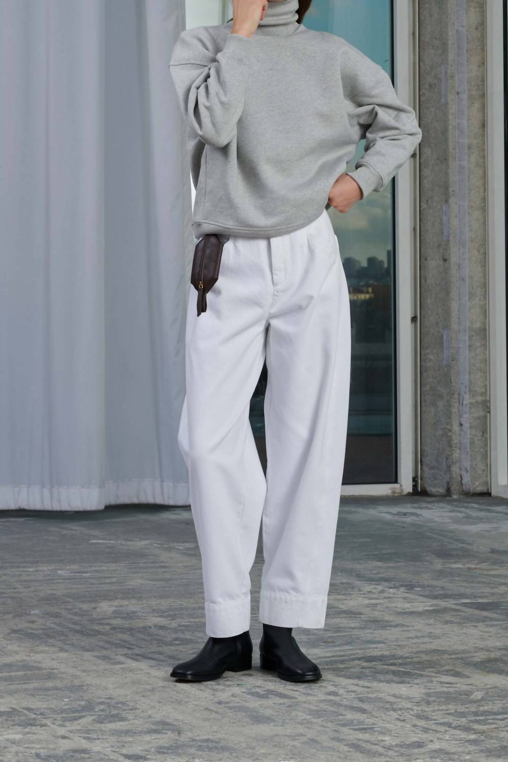 Elevate your spring wardrobe with the Soeur Women's Volage Denim High-waisted Trousers in a chic solid white. Featuring a straight leg and relaxed fit, these trousers are crafted from 100% cotton, ensuring comfort and breathability. They come with a removable double buckle belt and two practical back patch pockets. Closure: Hook and loop fastener. Care: Machine washable. Perfect for an engagement or workwear look.
