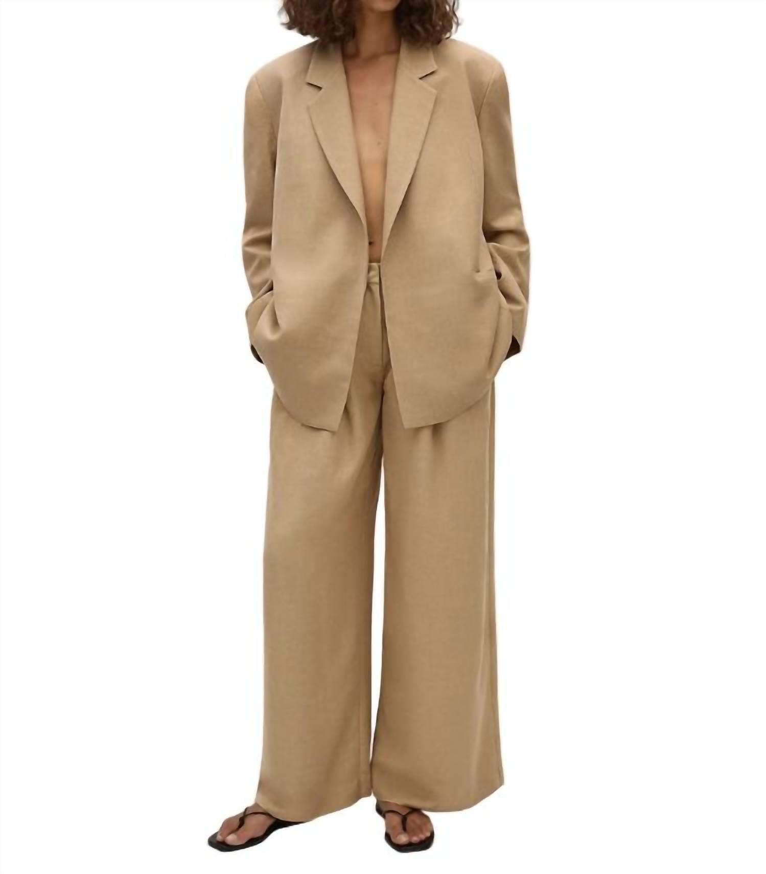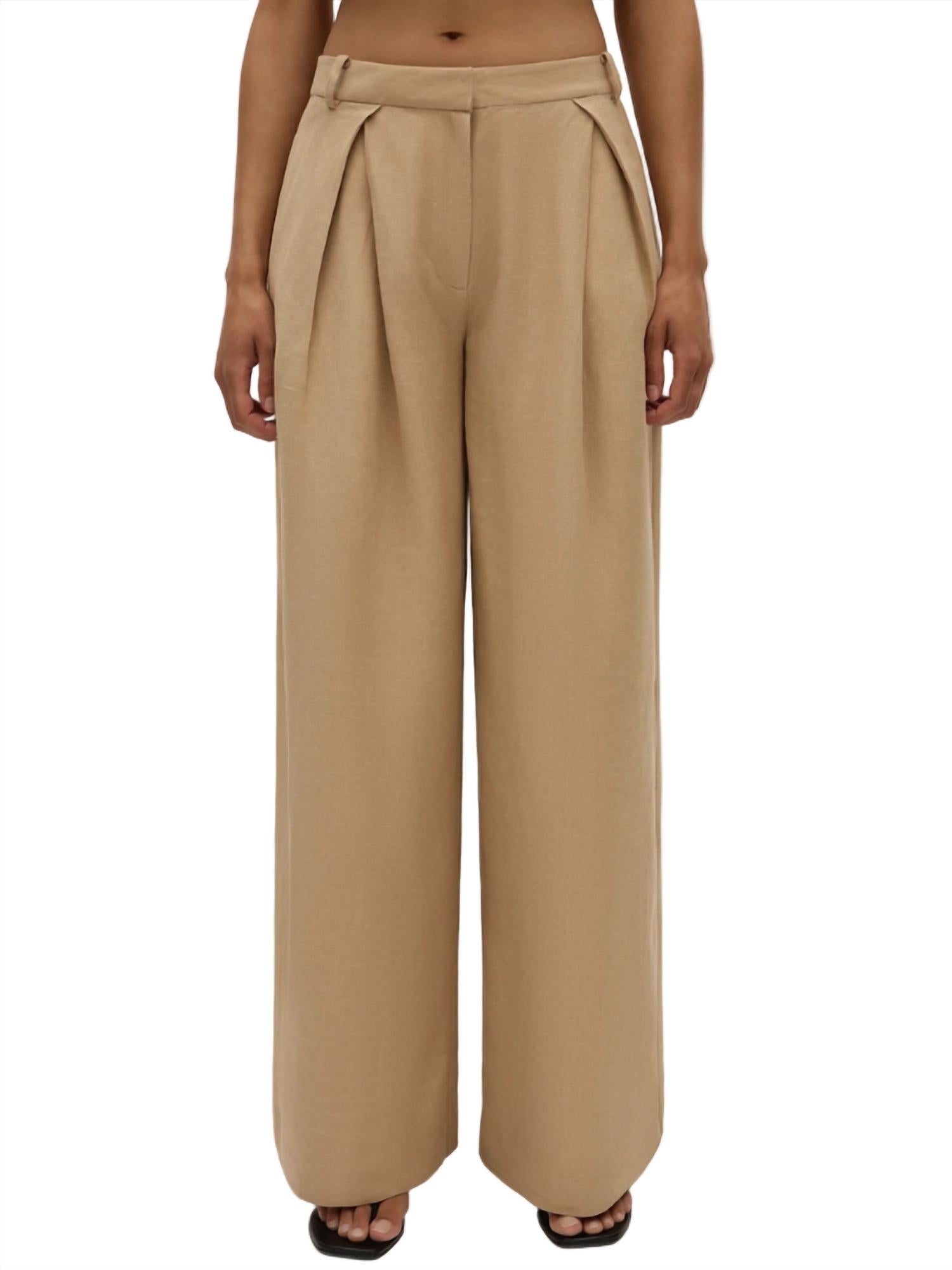 Meet the Astrid High Rise Trouser by FAITHFULL THE BRAND, a chic addition to any wardrobe, crafted in a Sahara solid color. These trousers feature a viscose blend composition, comprising 52.5% Rayon, 21.5% Viscose, and 26% European Linen, ensuring a luxurious feel and imported quality. Designed with a zip closure, high-rise waist, and relaxed fit, they flare into a wide-leg style that crops around the ankles, embodying a modern aesthetic. For optimal garment care, these trousers require dry cleaning.