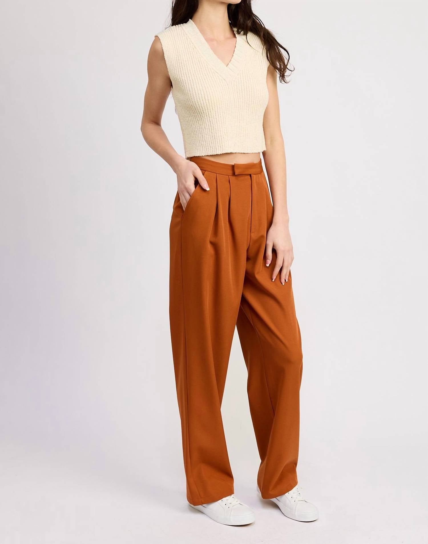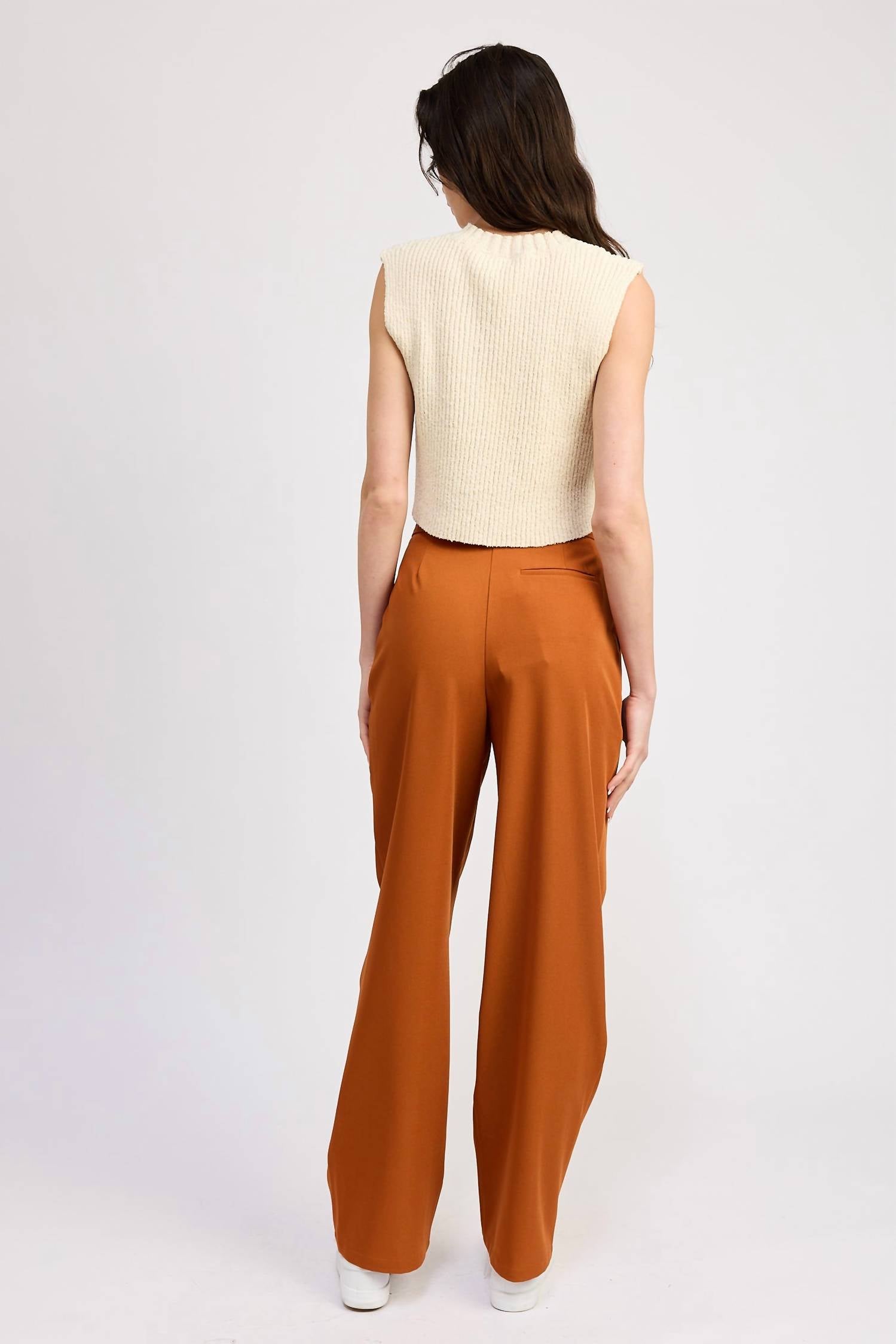 Introducing the Atlas Trouser by ASTR, a chic terracotta piece designed for both comfort and style. Crafted from high-quality polyester, these trousers feature a flattering wide-leg silhouette complemented by front pleats and a high-rise waist. With practical pockets included, they are perfect for a polished look. Care is simple with hand wash instructions, making these trousers both practical and stylish for any wardrobe.