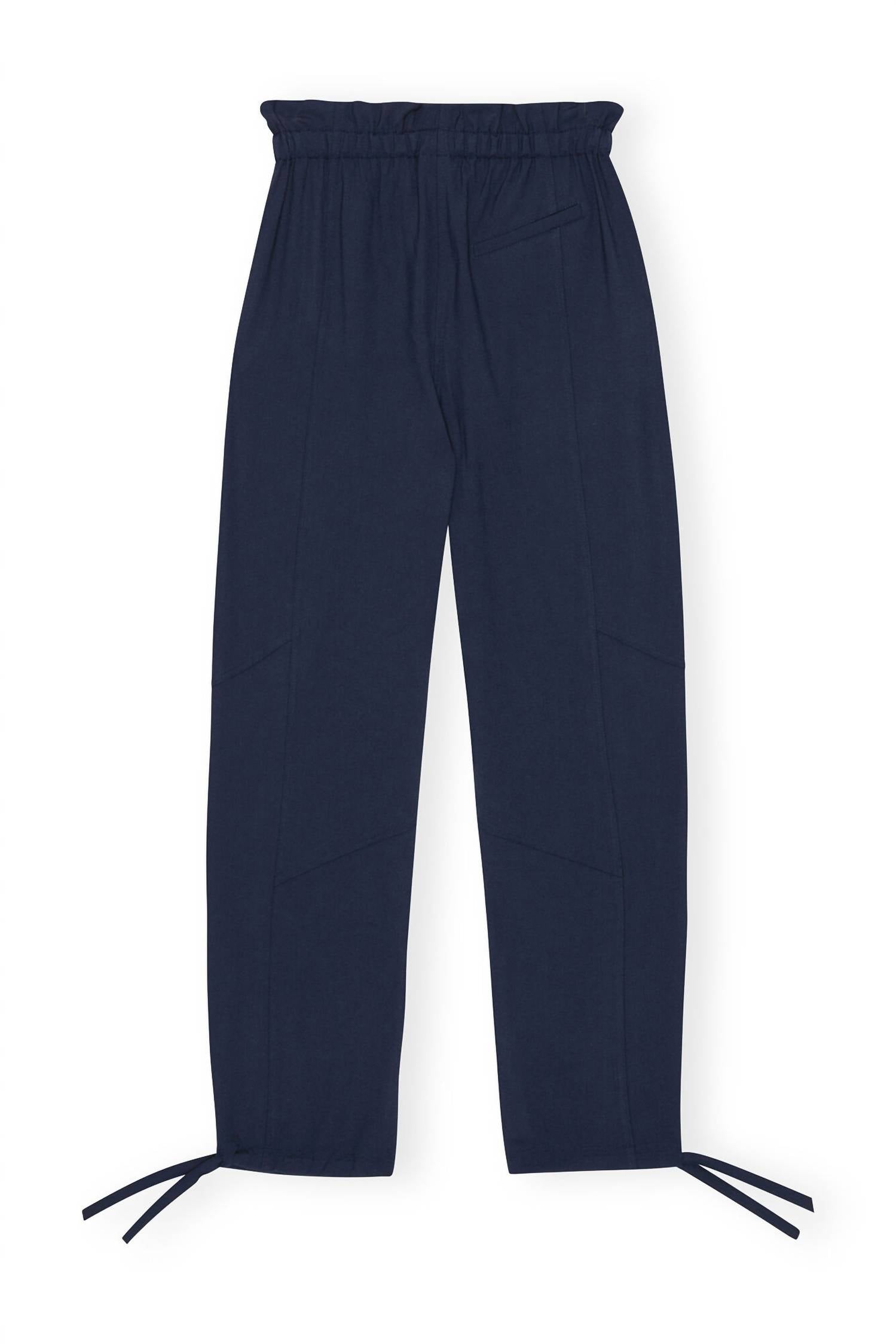 Discover the Light Elasticated Waist Pants by GANNI, perfect for minimalist style and travel. Featuring an elasticated waist with drawstring closure across the waist and ankles, these trousers ensure a comfortable fit. Made from 48% recycled polyester, 45% lenzing™ ecovero™ viscose, 4% elastane, and 3% polyester, these pants are machine washable and crafted in Turkey. Care instructions include washing cold, not bleaching, no tumble drying, ironing at medium heat, avoiding dry cleaning, and washing with similar colors for best results.