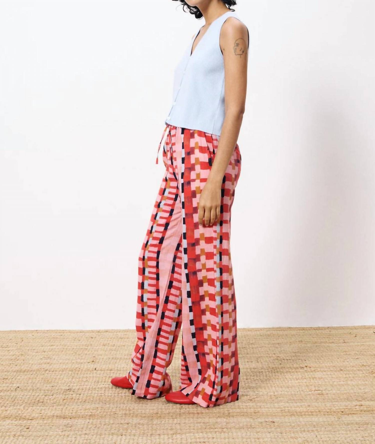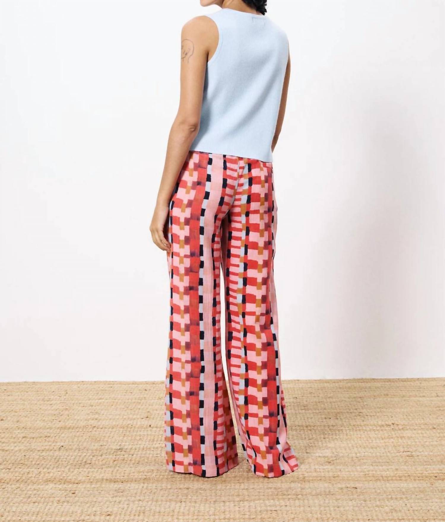 Elevate your summer wardrobe with the FRNCH Clemencia Spatule Trousers, showcasing a vibrant multi-colored pattern. These straight-leg trousers offer a relaxed fit, thanks to their elasticated waistband and practical side pockets, with a faux pocket for added style. Constructed from 100% Viscose, they are designed for a light and airy feel perfect for vacation wear. For care, simply hand wash to maintain their stunning appearance.