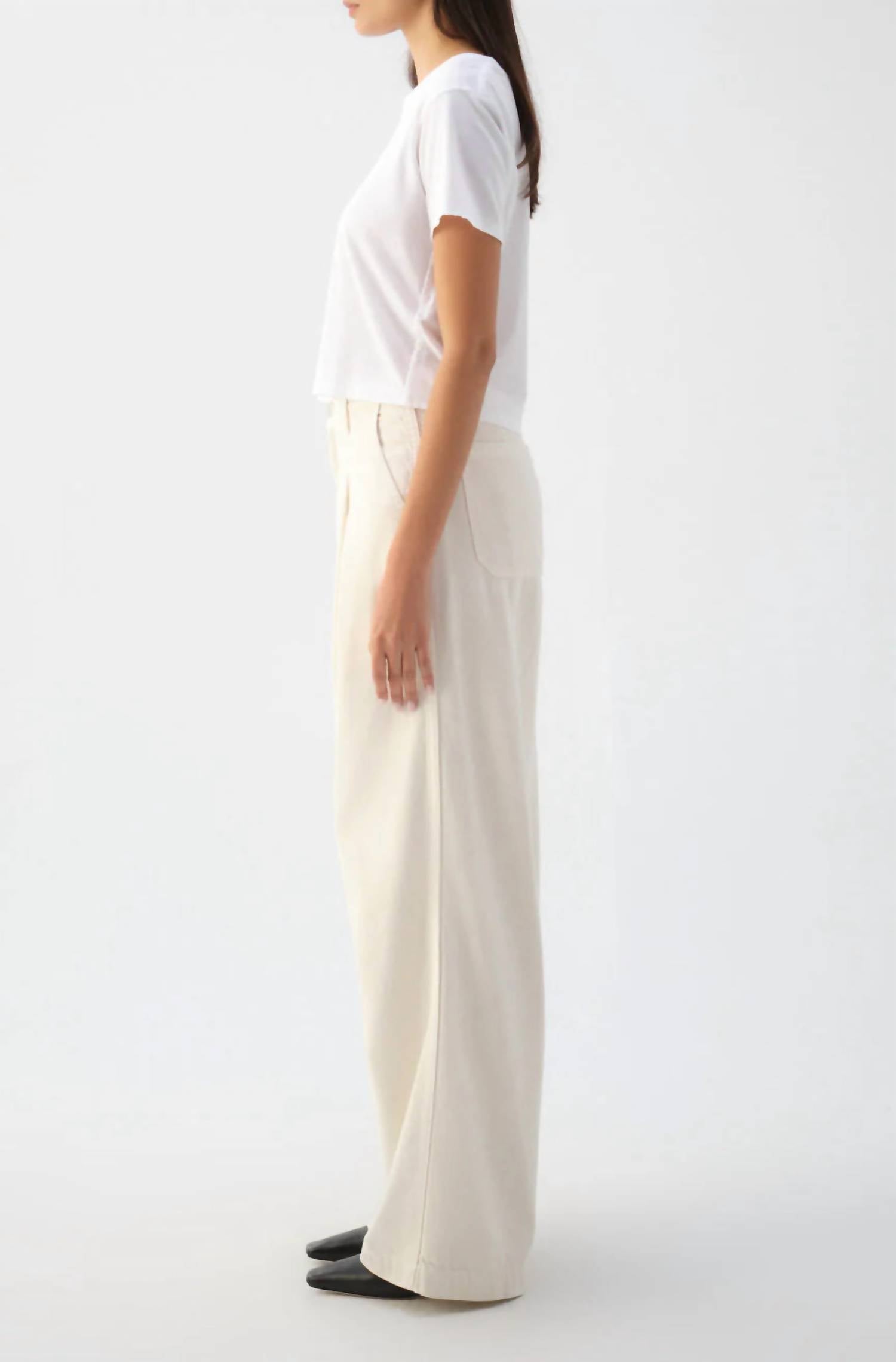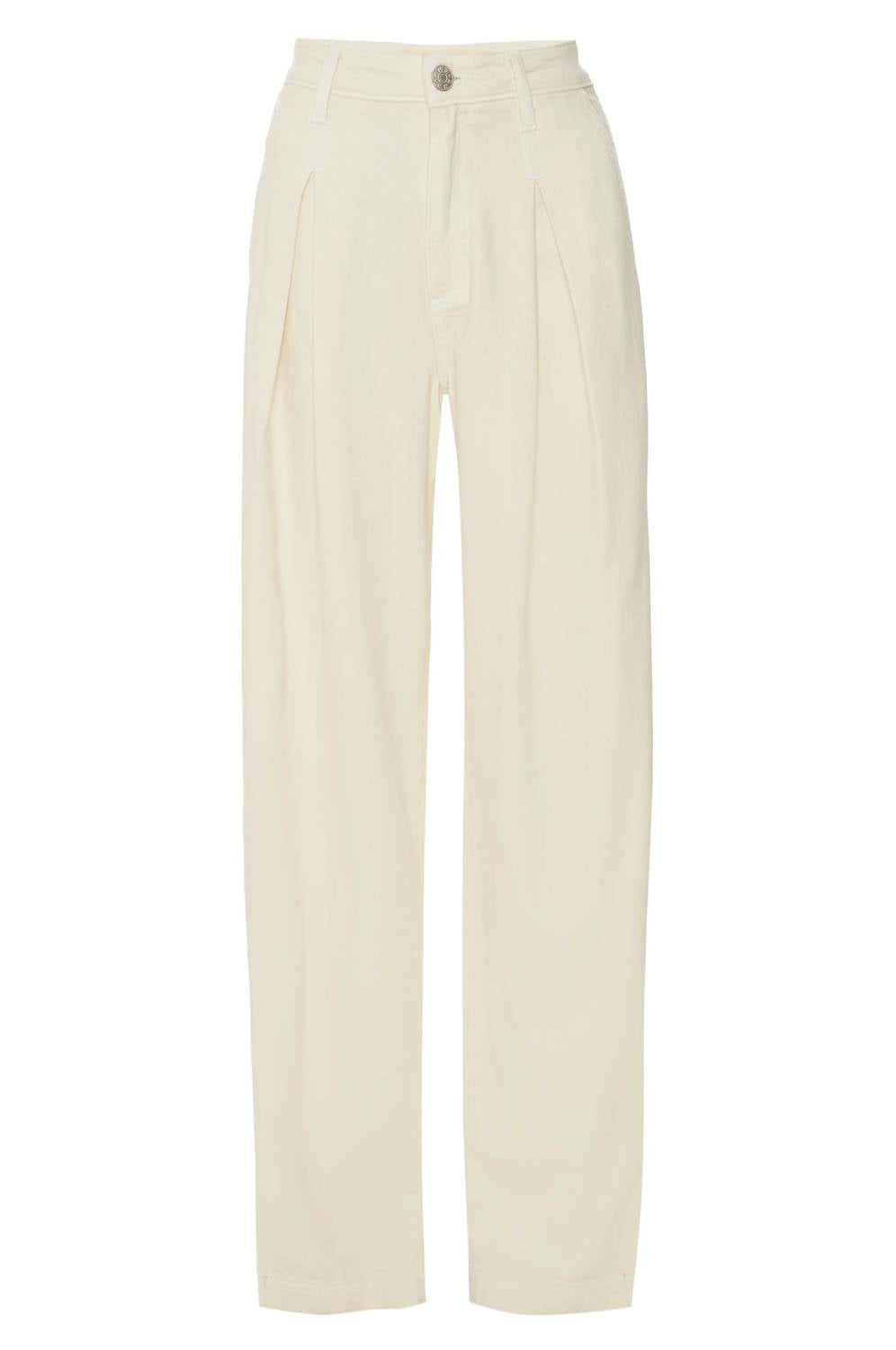 Introducing the Mary Slouch Trouser by AMO in a classic porcelain color. These slouchy trousers feature a relaxed fit with a high rise for a stylish silhouette and a wide, straight leg for a chic yet casual look. Crafted from a blend of 82% cotton and 18% rayon, they are made with love in Los Angeles. Closure: Button closure. Dimensions: 32" inseam, 12.5" front rise, 16" back rise, 23.5" leg opening, based on size 25. Care: Machine wash cold, hang dry or tumble dry low. Gizele is wearing a size 25 and stands 5'10".