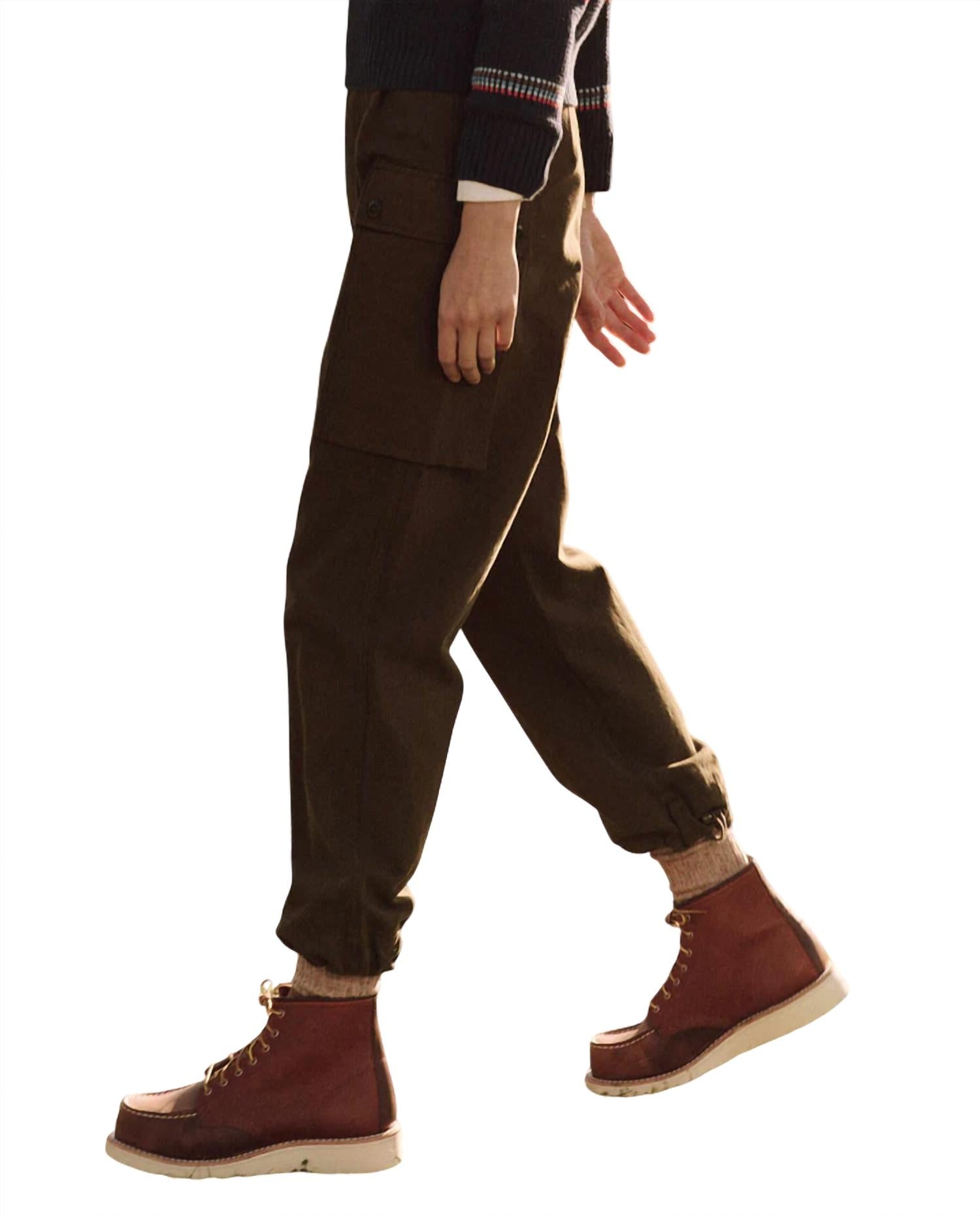 The Convoy Pant by THE GREAT. brings military-inspired style to your wardrobe with its relaxed fit and trouser-style pleats. Crafted from 100% cotton twill, these pants feature cargo pockets and wide belt loops, lending a utilitarian vibe in a vintage military hue. The corozo button closure and bungee cords at the ankles offer a customizable fit, while its tapered leg creates a sleek silhouette. Care is easy with a machine wash, but note that dry cleaning is recommended for maintaining its quality.