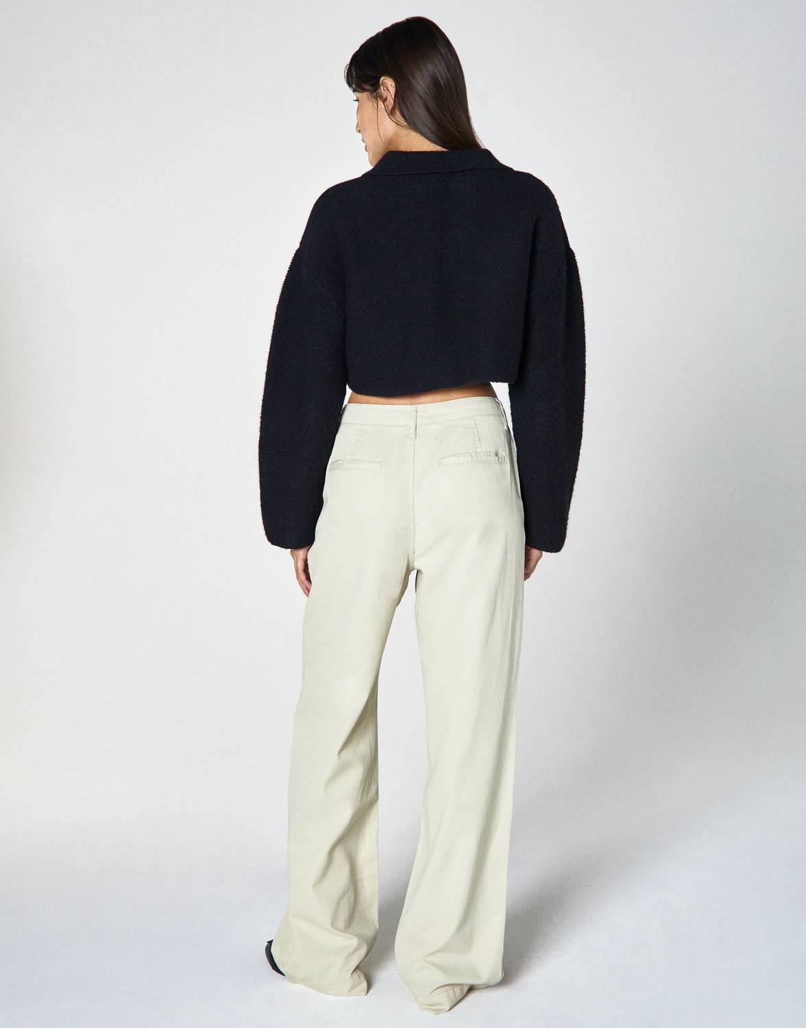 Lightweight and stylish choice for women's fashion. Crafted from 100% cotton. Feature a super high 12" rise and wide stacked leg with a relaxed fit. Design includes practical pockets and a button closure, ensuring both style and utility. Care is simple with machine wash cold, and tumble dry low. Denim dimensions include a 32" inseam and a 20" leg opening. Model is 5'7" and wears a size 26.