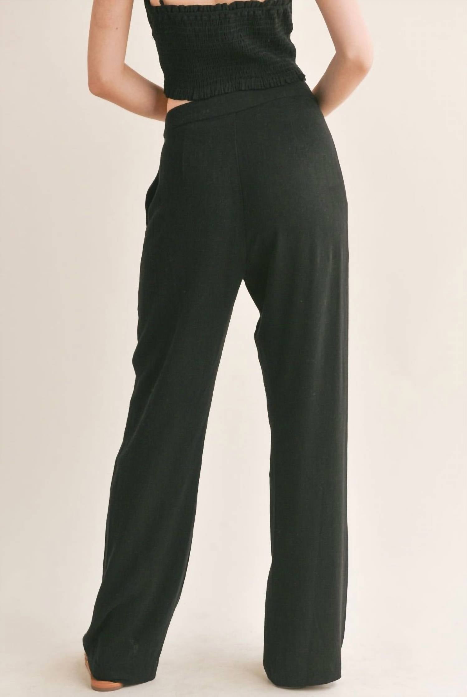 The At Ease Pleated Trouser by SAGE THE LABEL is an ideal choice for versatile elegance in classic black. With a comfortable pull-on closure, this trouser is made from a blend of 70% rayon and 30% linen, offering a solid-pattern sophistication perfect for the office or a night out. Featuring a low-rise waist and straight leg silhouette, it ensures a regular fit that's both stylish and easy to wear. While crafted for the modern woman's wardrobe, its minimalist trend makes it suitable for any spring occasion, including Thanksgiving and holiday parties.