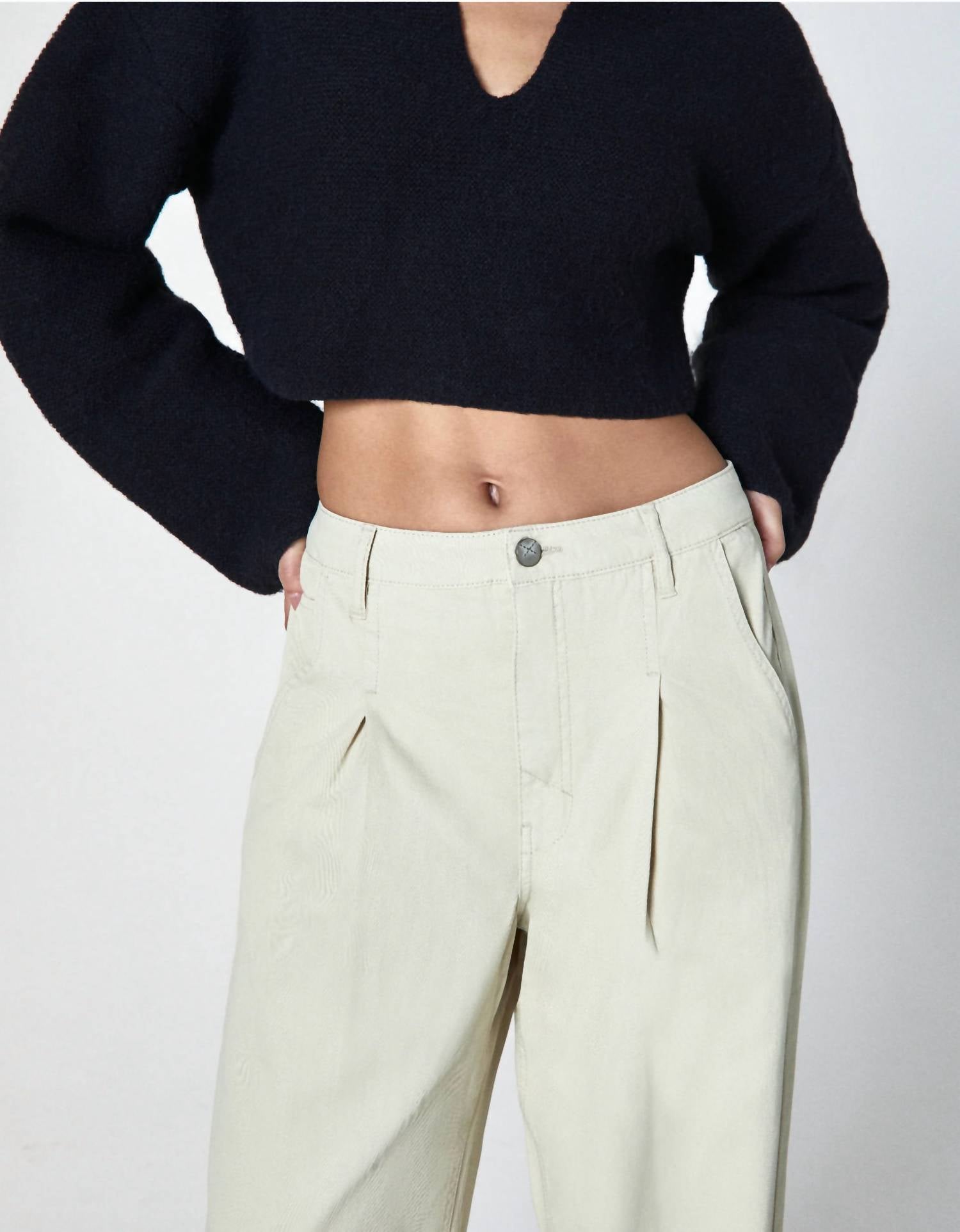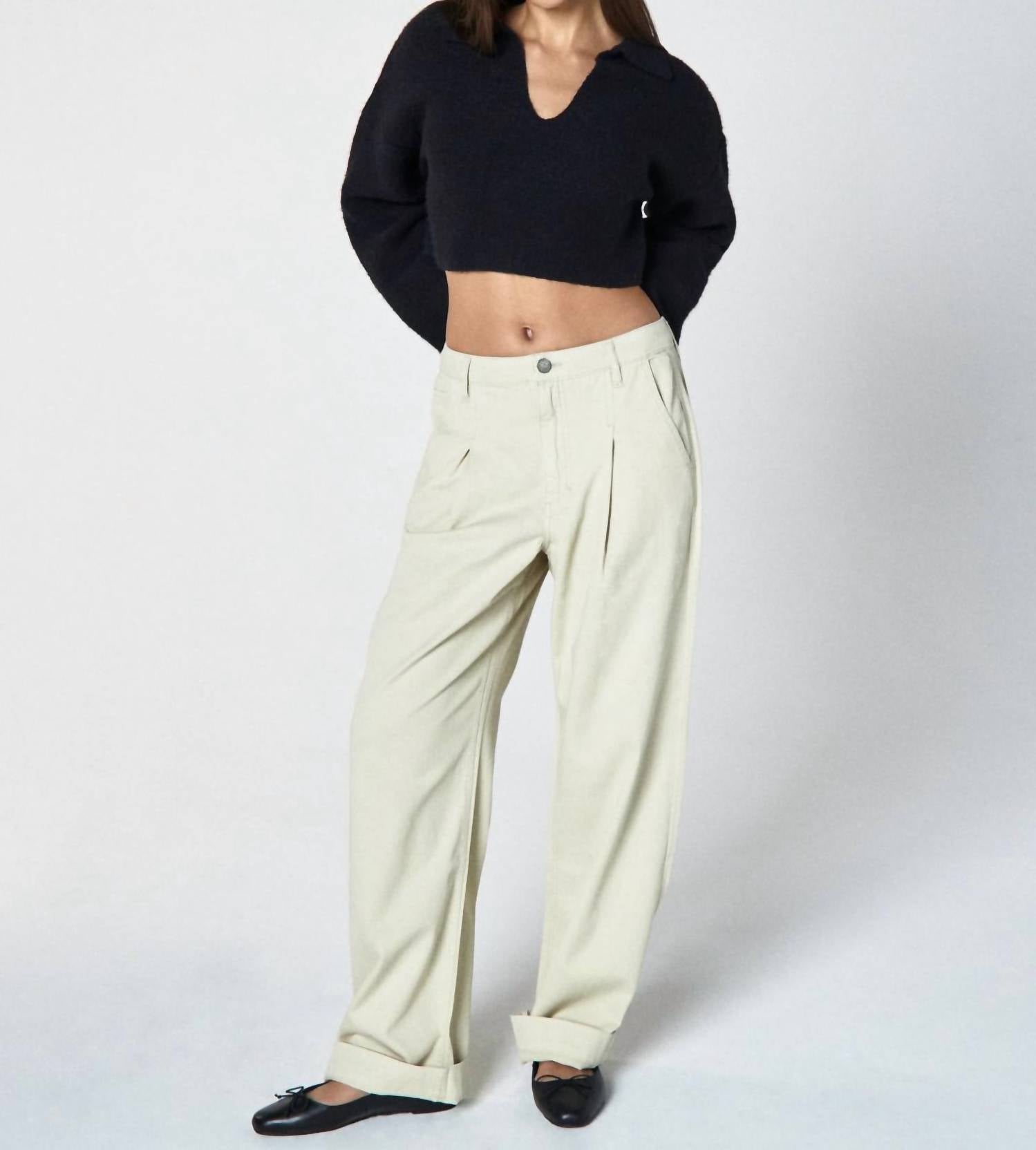 Meet the Zoey Wide Leg Trouser by Unpublished, the perfect blend of style and comfort in a solid canvas hue. Featuring a relaxed fit, these trousers boast a super high 12" rise with a spacious 20" leg opening and a 32" inseam. Crafted from 100% lightweight cotton, they include convenient pockets and a button closure. Effortlessly safe for machine wash and tumble dry, this piece channels 90s fashion vibes ideal for springtime travels. Model is 5'7" and wearing a size 26.