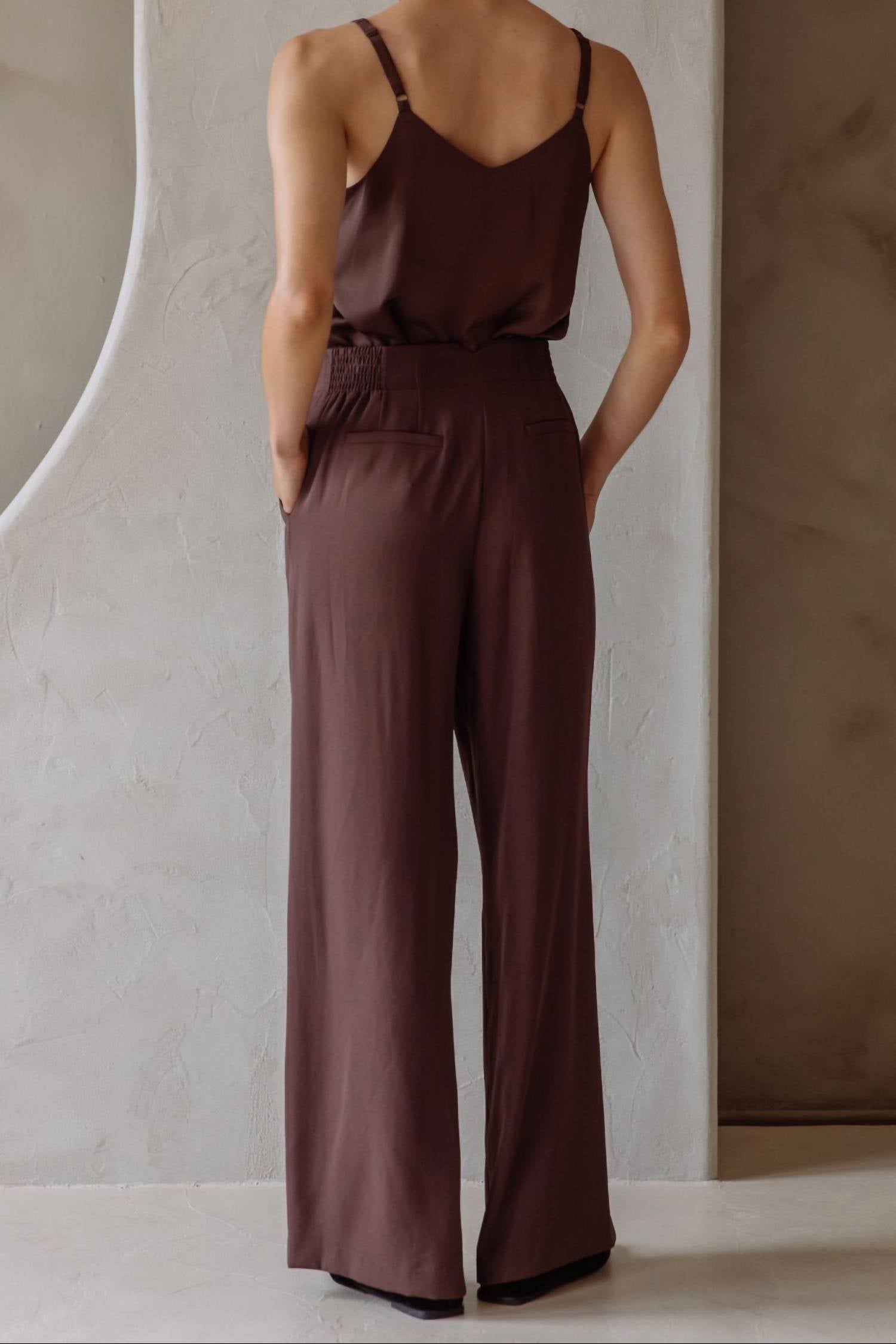 Discover the Adria Trouser Pants by SKIES ARE BLUE, a minimalist wardrobe essential tailored for spring and sophisticated New Year's Eve gatherings. These elegant pants feature a high-rise, relaxed fit, with a wide leg design and a pleated front, offering both style and comfort. Made from a blend of 52% recycled polyester and 48% polyester, they measure 42 inches in length and include hip pockets. The zip fly with an extended button tab closure, partnered with an elastic back waistband, ensures a comfortable fit, while hand wash care keeps them looking chic.