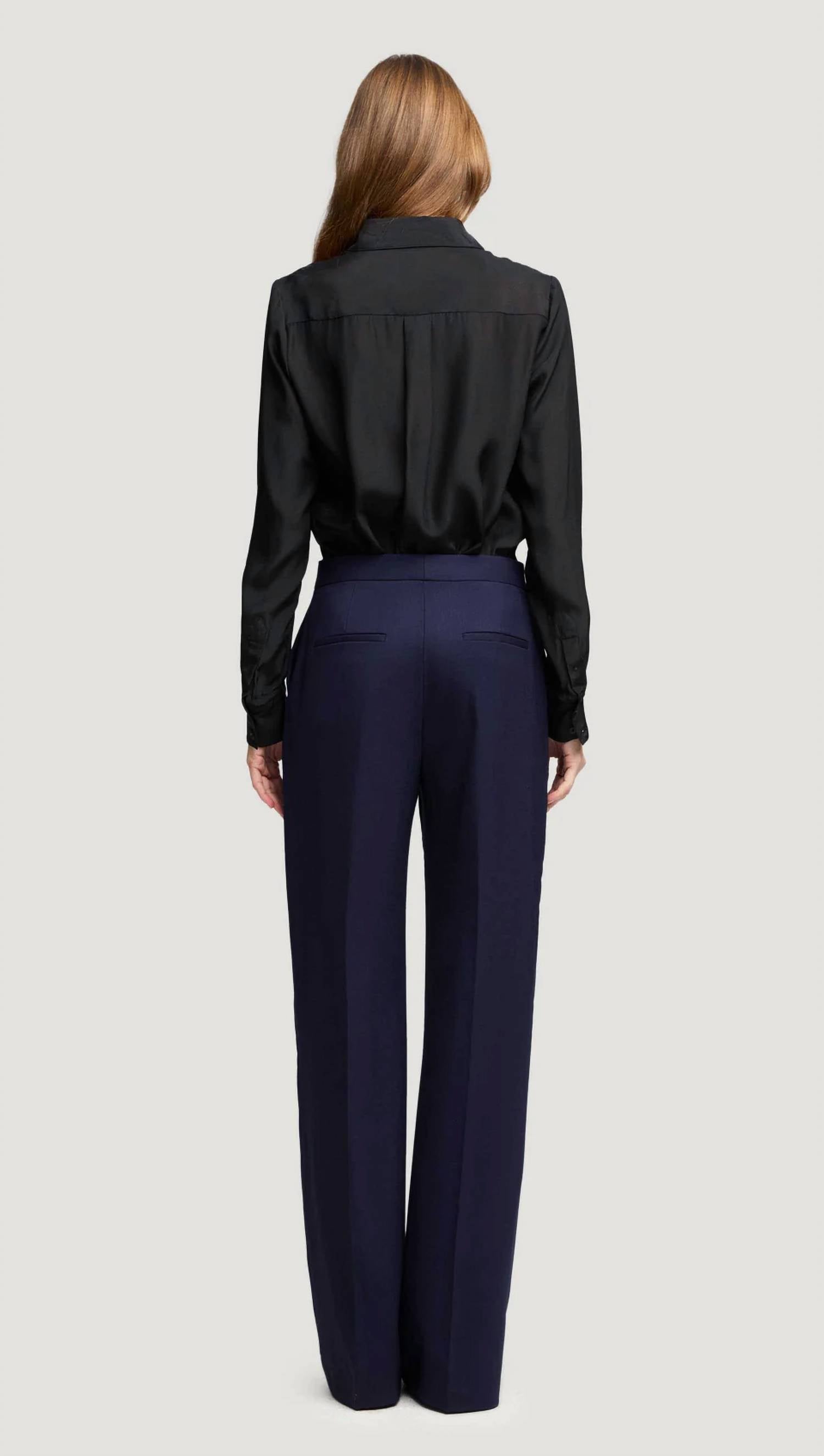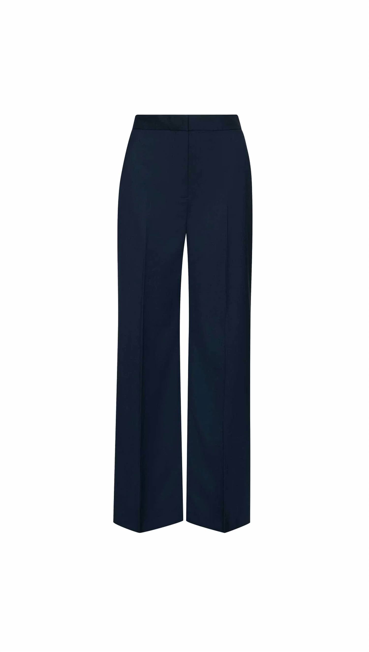 Introducing the Seasonless Wool Wide Leg Pants by Argent, a sophisticated choice in Navy for the modern wardrobe. Crafted with a flattering high-rise and classic wide-leg silhouette, these trousers are made from a refined Italian stretch wool blend, composed of 98% Wool and 2% Elastane, with a 55% Acetate and 45% Viscose pocket lining. Featuring functional exterior credit card, front side, and back welt pockets, they're ideal for workwear or travel. Origin: Made in Portugal. Closure: Zip closure. Care: Dry clean only.