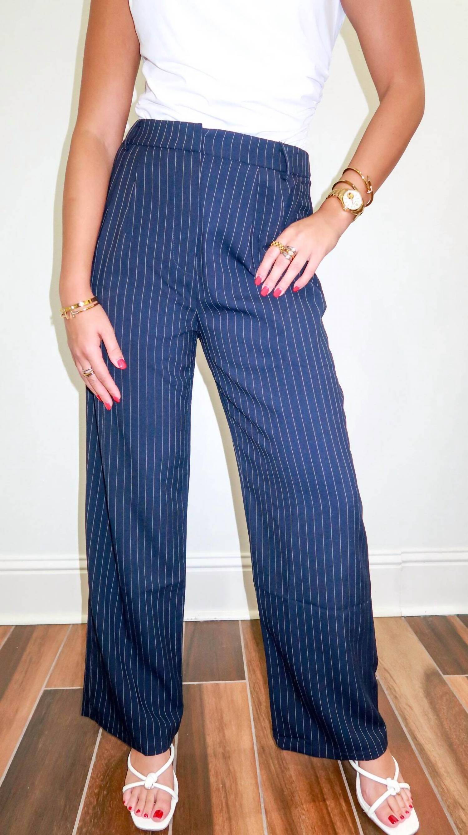 Elevate your workwear wardrobe with the Edit by Nine Off Duty Dress Pants, a chic and versatile addition in a striking blue stripe pattern. These women's pants feature a relaxed fit with a straight leg style and a comfortable mid-rise waist, perfect for stylish yet effortless elegance. Thoughtfully designed with pockets for convenience and a reliable zip closure for ease, these trousers are ideal for fall occasions like church or Thanksgiving gatherings. Originating from high-quality craftsmanship, they are tailored to deliver the perfect balance of style and comfort.
