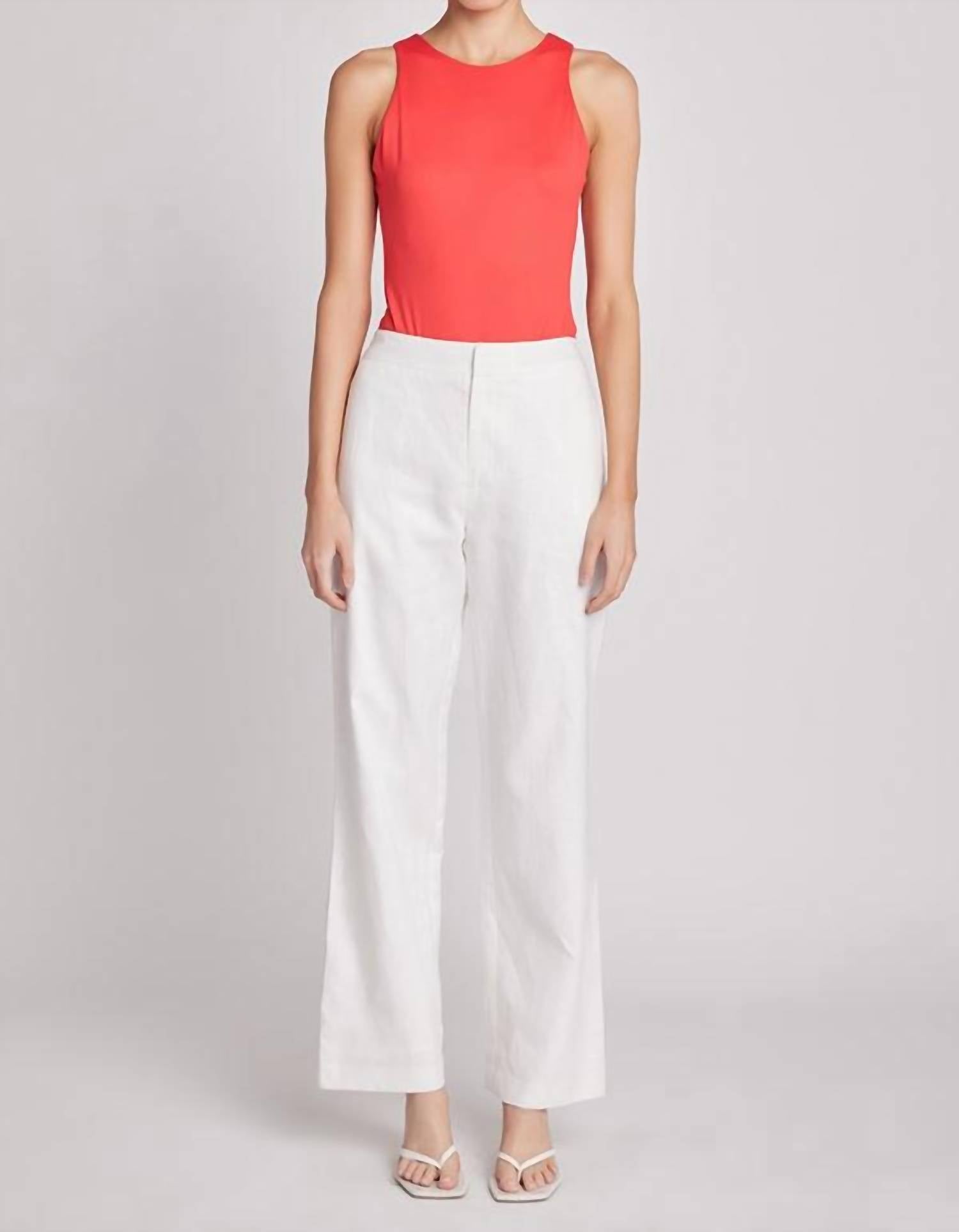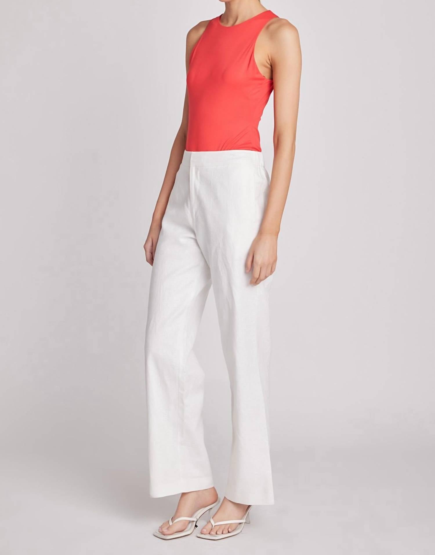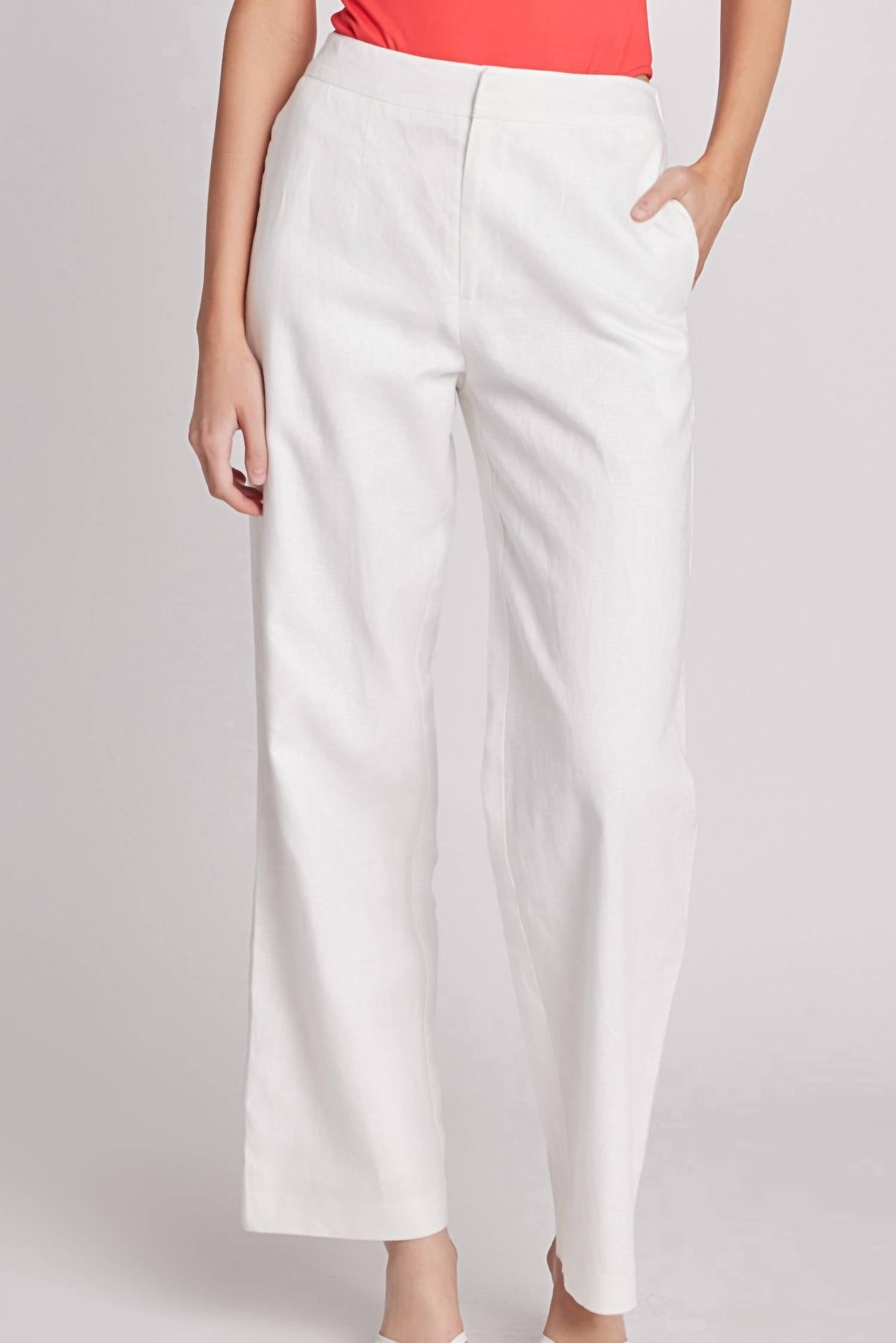The Essential Linen Trouser by English Factory is a warm-weather staple crafted from a breathable linen blend for all-day comfort and effortless polish. Featuring a flattering high-rise waist and a relaxed wide leg, this long-length trouser includes subtle side invisible pockets and a clean center front zipper closure. Made with a shell of 55% linen and 45% rayon, it’s lined with 80% polyester and 20% cotton for enhanced durability. Care instructions: Hand wash cold, do not bleach, iron low, and do not tumble dry.