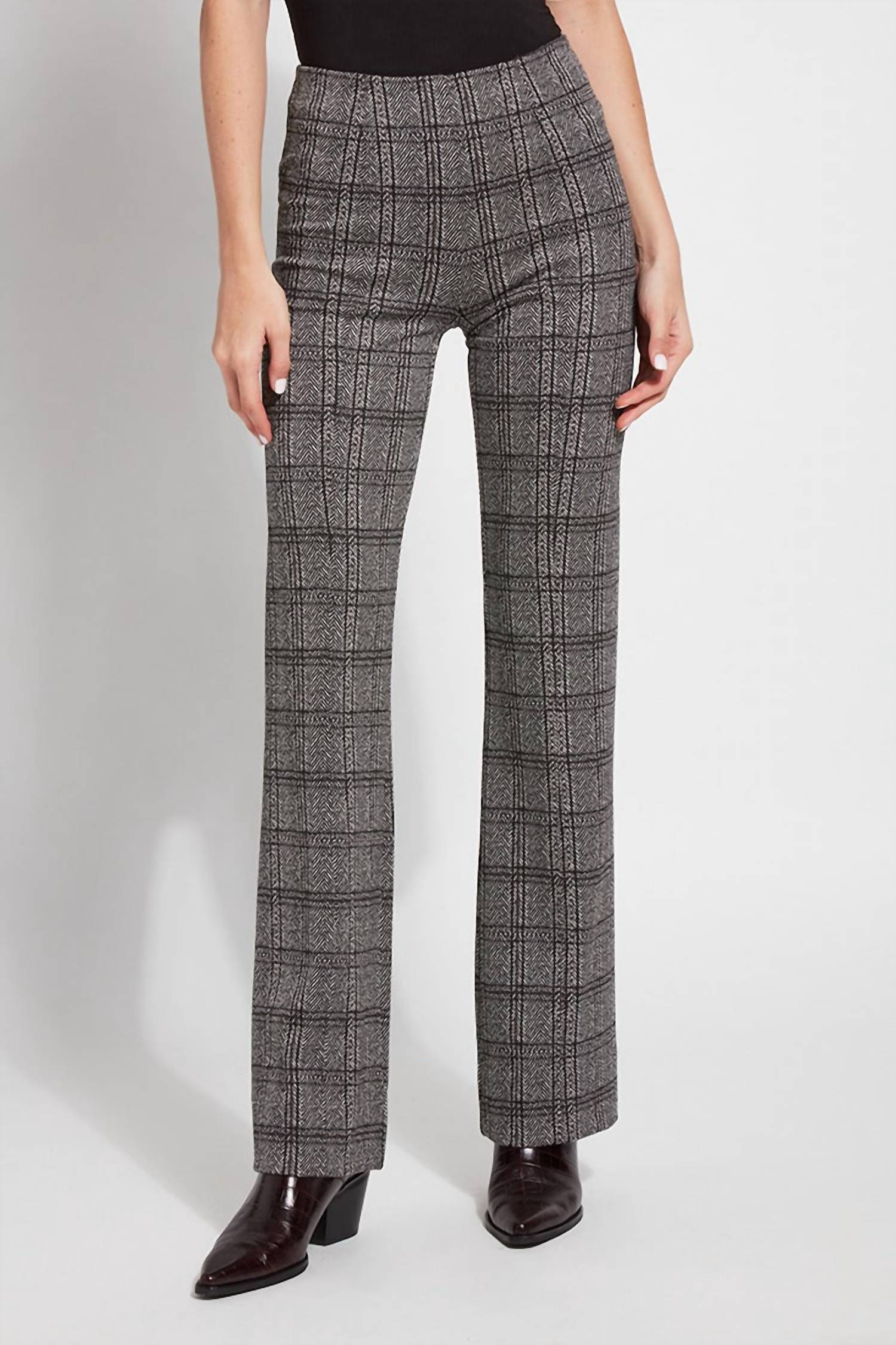 Enhance your wardrobe with the Ponte Jacquard Bootcut Trouser by Lysse, specifically designed for a slimming and relaxed fit. This black trouser features a high-rise concealed patented waistband and a chic bootcut leg that beautifully skims the hips and thighs. Made from 77% Polyester, 20% Rayon, and 3% Spandex, it offers 4x stretch for ultimate comfort with a 33" inseam. Easy to care for with a simple machine wash, these trousers are your go-to for both work and leisure, ideal for the spring season and stylish occasions like Easter or an engagement.