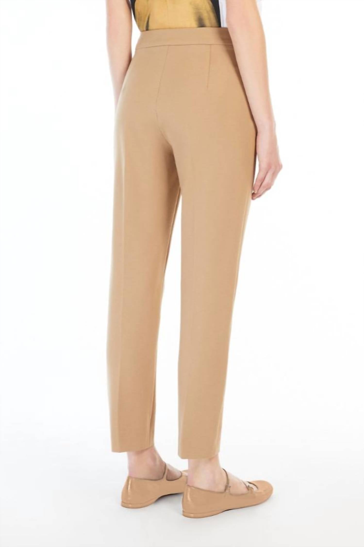 Introducing the Furio Cropped Ankle Pant by MaxMara, a sophisticated addition to your workwear collection. These trousers feature a mid-rise waist and a regular fit, tapering elegantly at the ankle for a refined look. Crafted in soft, compact viscose jersey with a solid cammello hue, they include slant pockets and a trouser crease for a polished finish. Closure: Zip closure with a wide waistband. Care: Dry clean only.