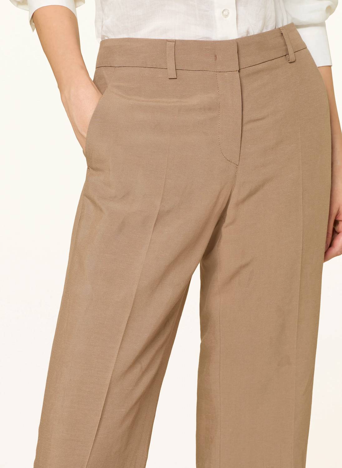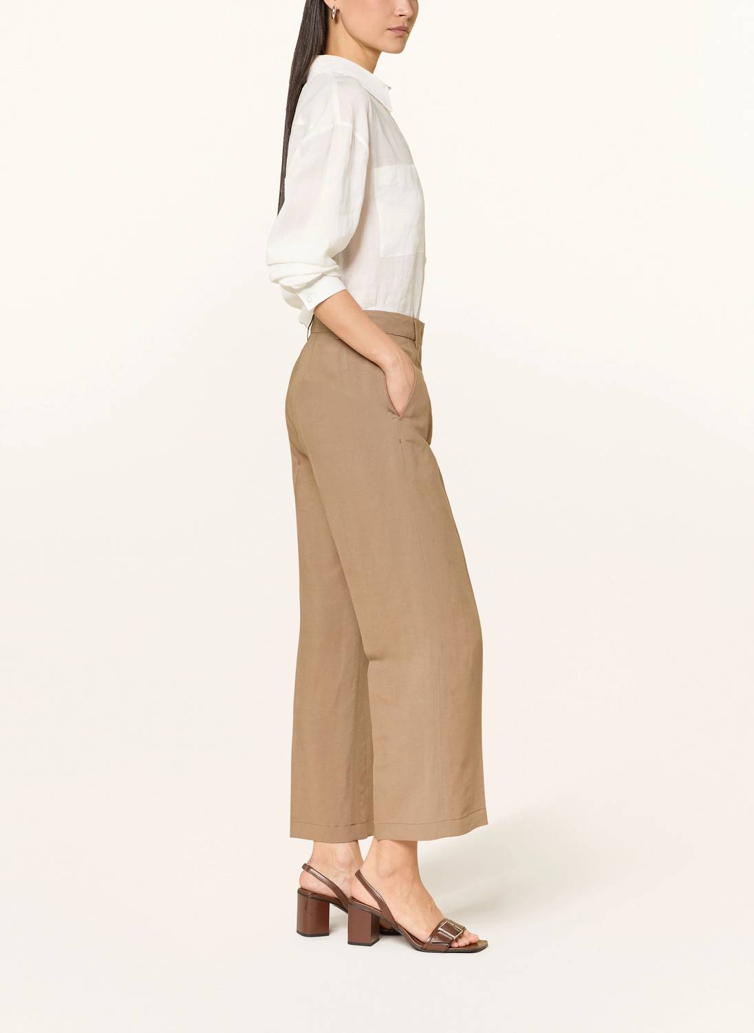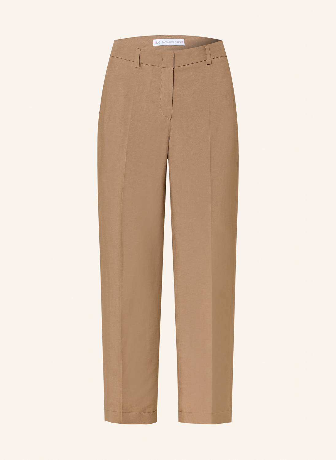 Discover the Olessa 7/8 Pants by RAFFAELLO ROSSI, a refined choice for modern elegance in a versatile toffee hue. These high-rise trousers are made from a luxurious blend of 60% Viscose and 40% Linen, featuring a straight leg with pressed creases for a sharp silhouette. Designed with a hook and zip closure, they're perfect for effortless dressing while maintaining a clean, solid color. With a regular fit and a practical 29.5-inch inseam, these trousers require dry cleaning for lasting quality.