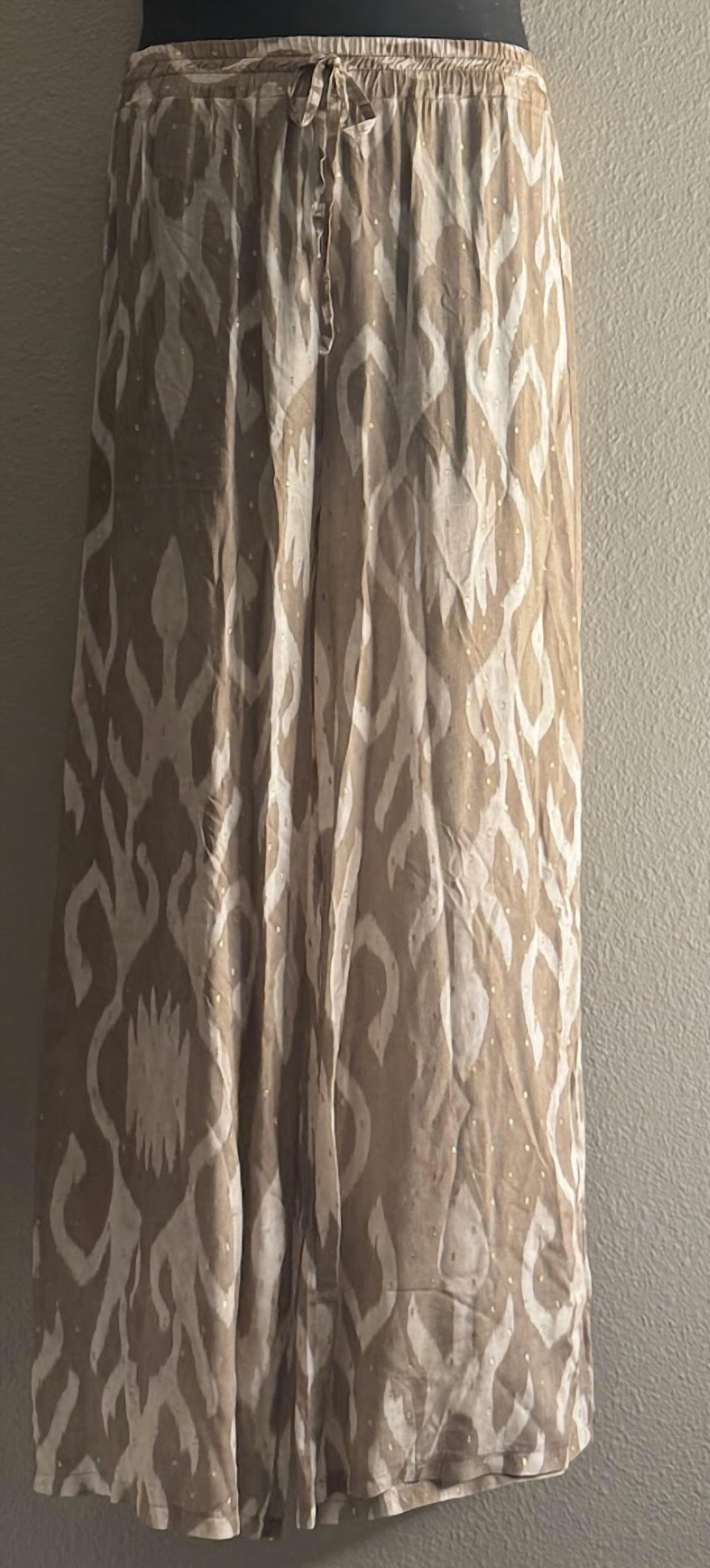 Discover the Women's Cozy Babylon Trousers by Scandal Italy, the ideal minimalist staple for your fall wardrobe. Featuring a relaxed fit and straight leg design, these patterned beige trousers offer a stylish and comfortable experience. With a convenient pull-on closure and a mid-rise waist, they ensure an effortless fit for travel and seasonal gatherings. Celebrate Thanksgiving in style with this elegant piece, crafted for a fuss-free, chic look.