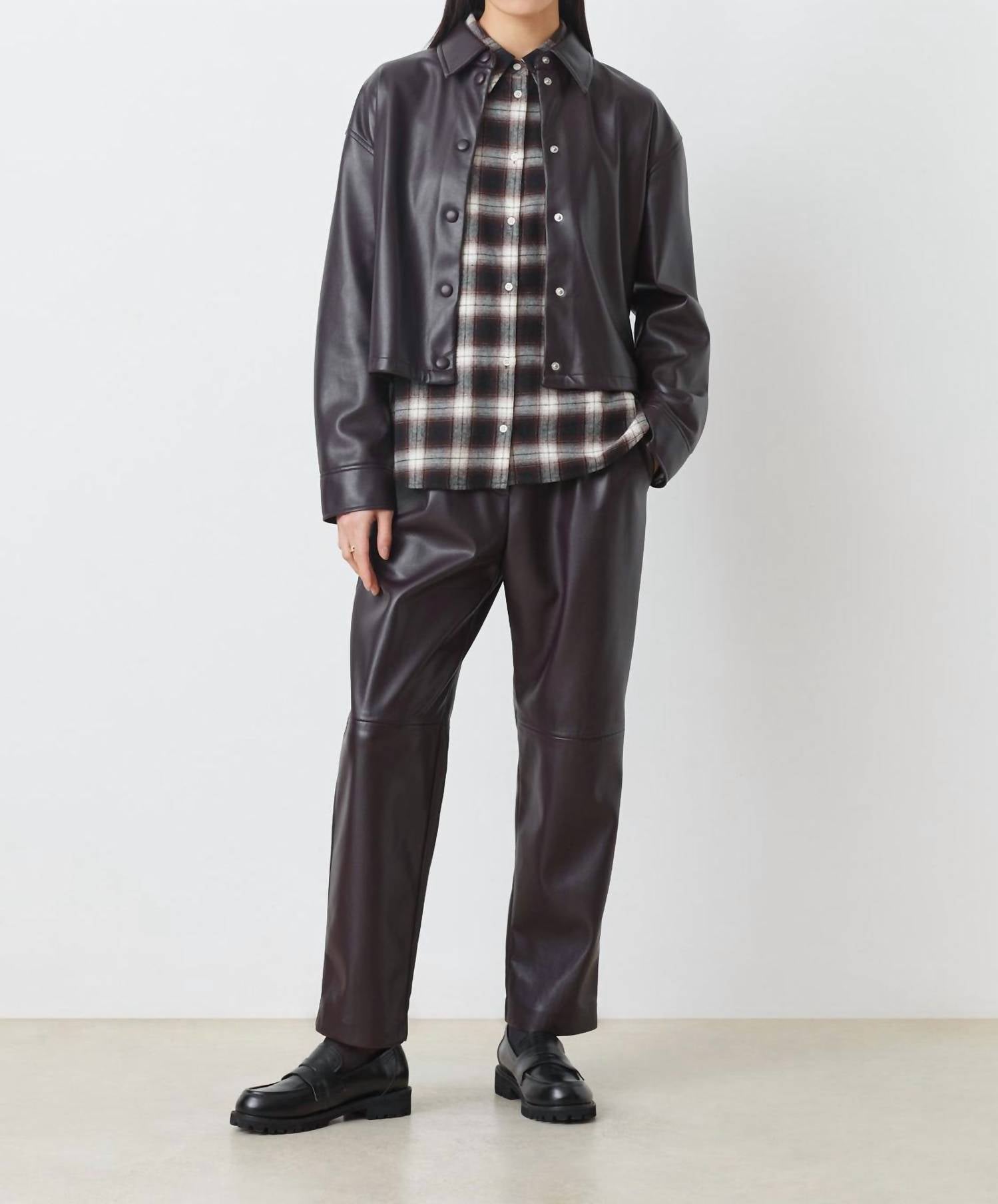 Suncoo introduces the Faux Leather Trousers in a rich chocolate hue, designed to elevate your fashion game. These women's trousers, crafted from 100% recycled polyester, feature a high-rise waist and relaxed fit with a straight leg style. The convenient pull-on closure and versatile solid pattern make them ideal for spring engagements or Thanksgiving gatherings. Pockets add functionality, while the monochrome trend ensures they transition effortlessly from day to night.