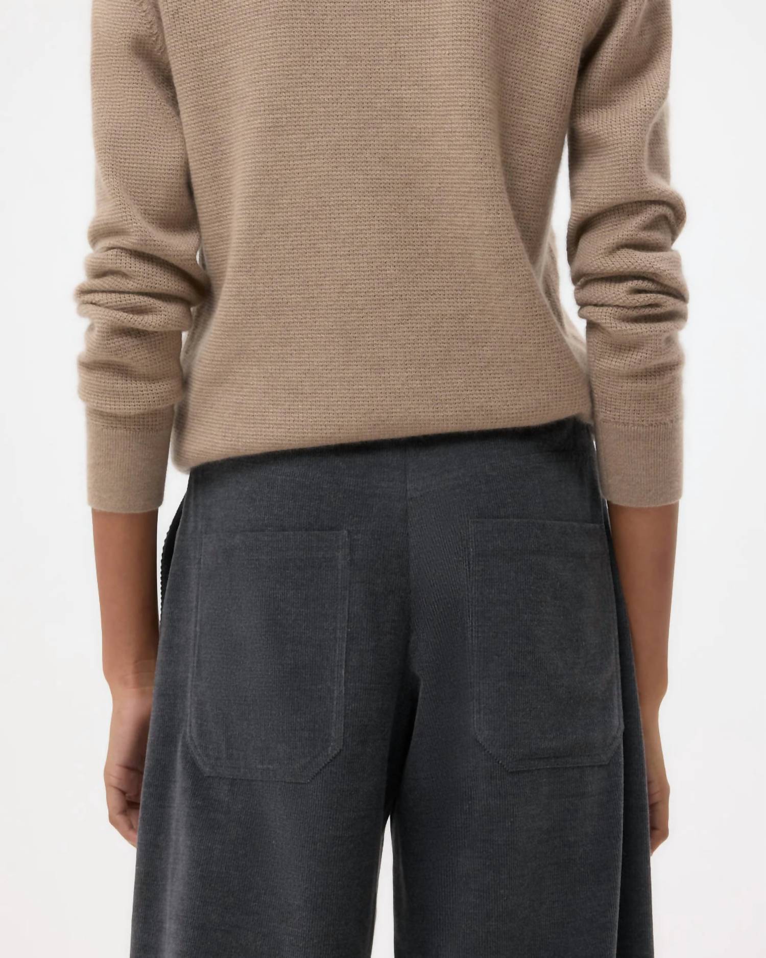 Introducing the Dylan Pants by TWP, a sophisticated choice for any dinner party or spring event. These charcoal heather grey, high-rise, straight-leg trousers are crafted from a luxurious blend of 90% cotton and 10% cashmere, offering a light and soft feel. The relaxed fit provides comfort, and the textured corduroy adds a matte melange finish. Accented with side and large back pockets, the concealed zip-fly with hook-and-eye closure ensures a sleek look.