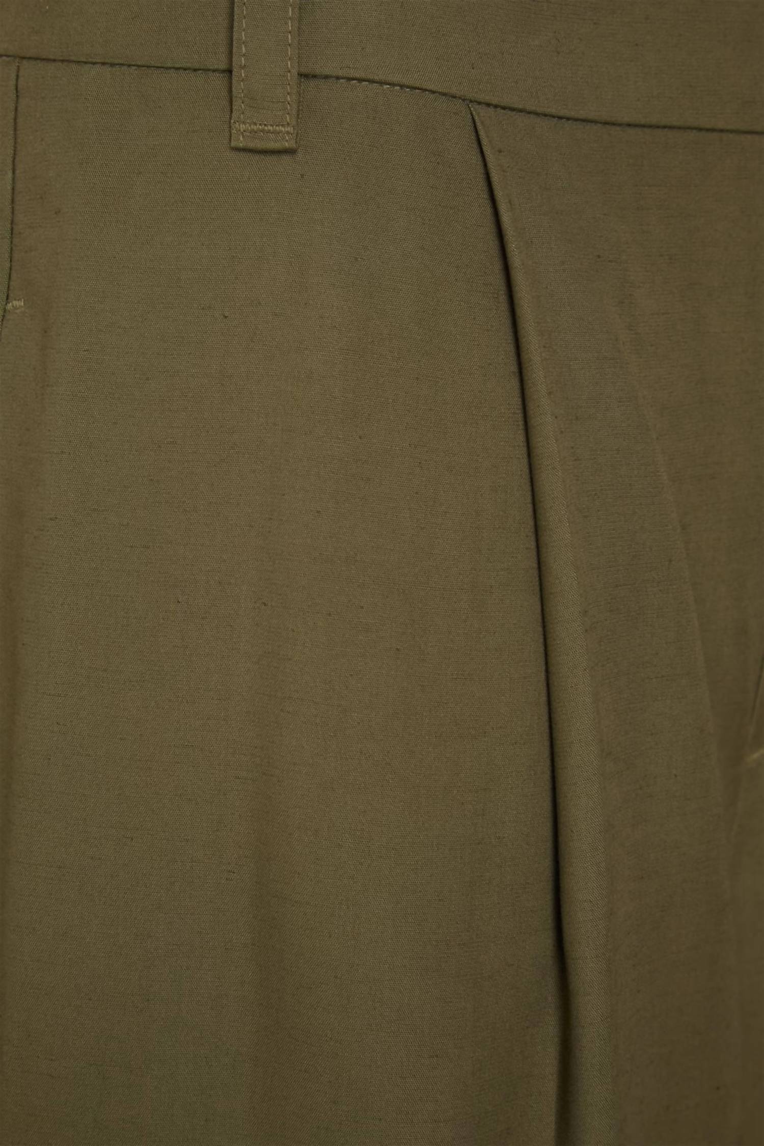 Discover the Vince Women's Soft Linen Blend High Rise Pull-On Pants in elegant olive green, perfect for a sophisticated yet comfortable look. Crafted from a luxurious blend of 64% Linen, 34% Rayon, and 2% Spandex, these wide-leg pants offer a relaxed fit with a high-rise waist. The pull-on closure with an elastic back waistband enhances ease and comfort, making them ideal for a variety of occasions from dinner parties to casual outings. With a 32-inch inseam, approximately 37-inch waist, and faux fly with functional pockets, these machine washable pants effortlessly combine style with practicality.