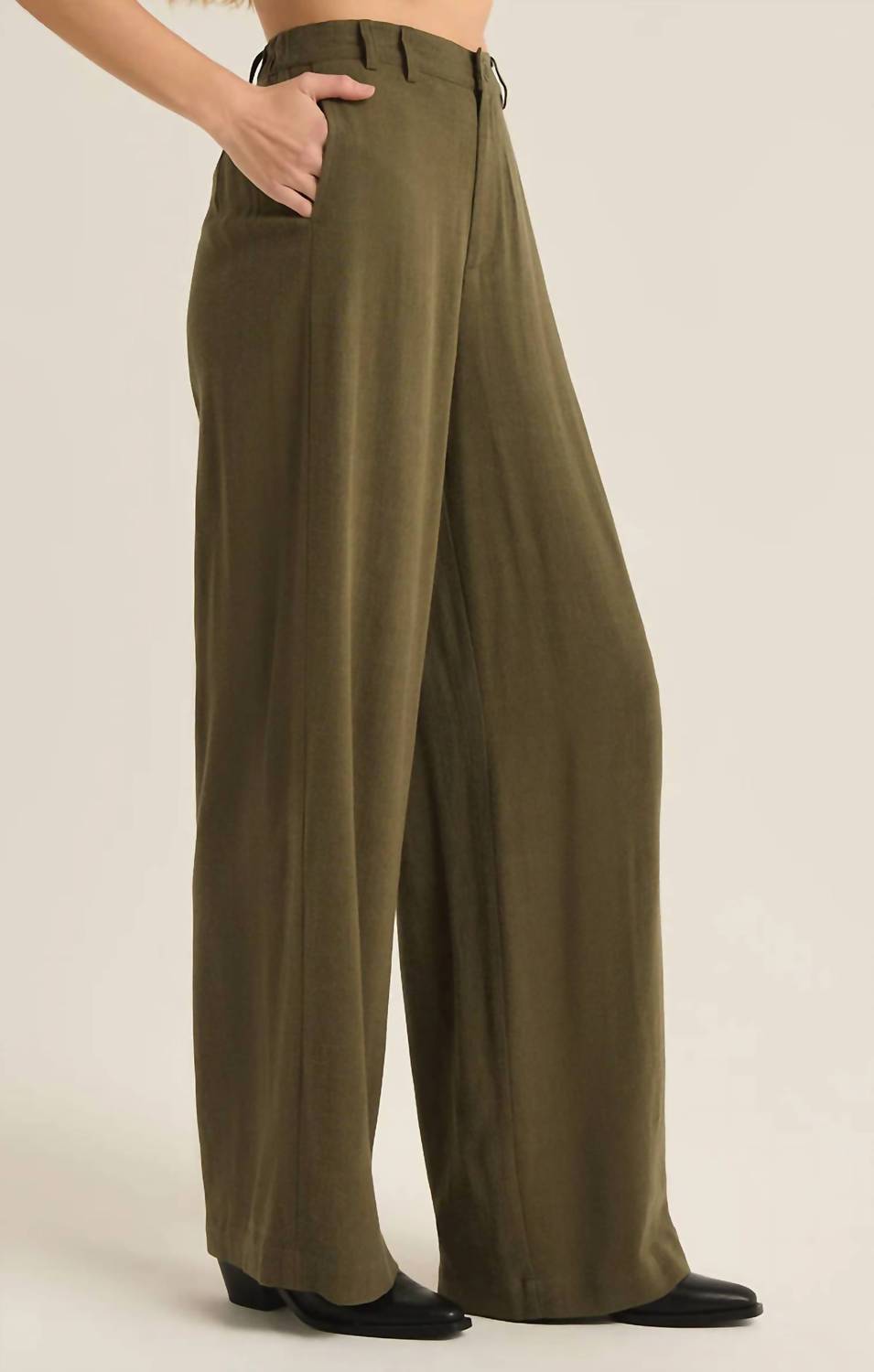 Presenting the Micah High Rise Pants by Z Supply in the always stylish Grape Leaf color, perfect for the Spring season. These full-length pants feature a relaxed fit with midweight, Rayon Linen composition of 86% rayon and 14% linen for comfort and breathability. The design includes straight legs, high rise, side seam pockets, a wide hem, belt loops, and a practical zip closure. Care instructions are simple: machine wash on a cold, gentle cycle and hang to dry.