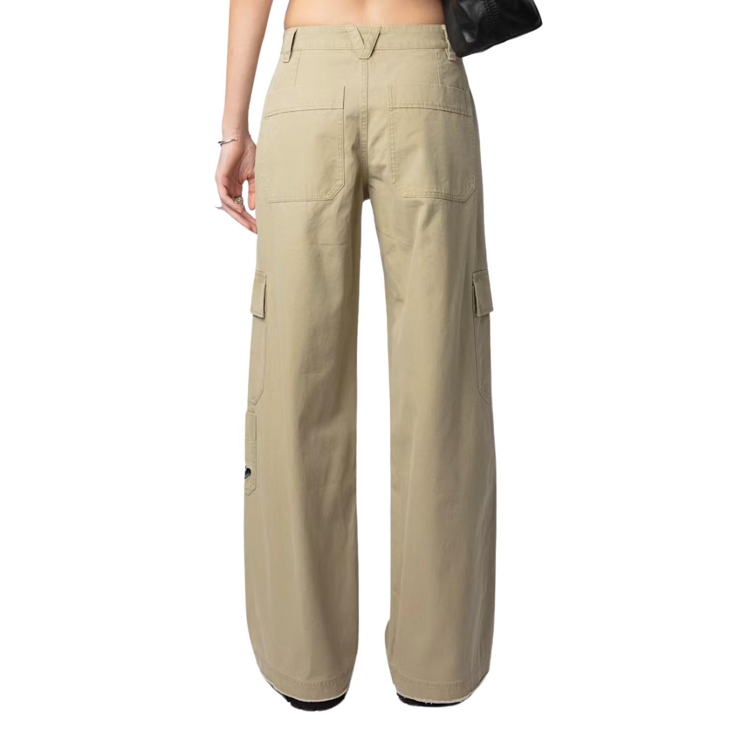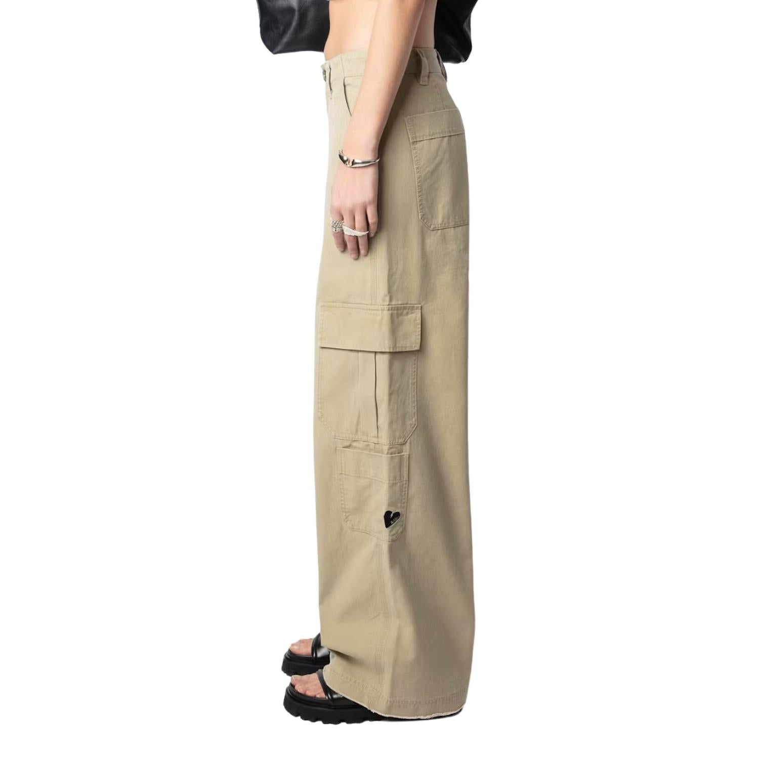 Zadig & Voltaire Parky Pants Organic Cotton in Latte Military-style pants Wide legs Zip and button fastening with belt loops Two Italian pockets Three side pockets including one with contrasting "Zadig" heart embroidery Two back pockets Topstitching and raw edges 2 US / 34 FR True to size
