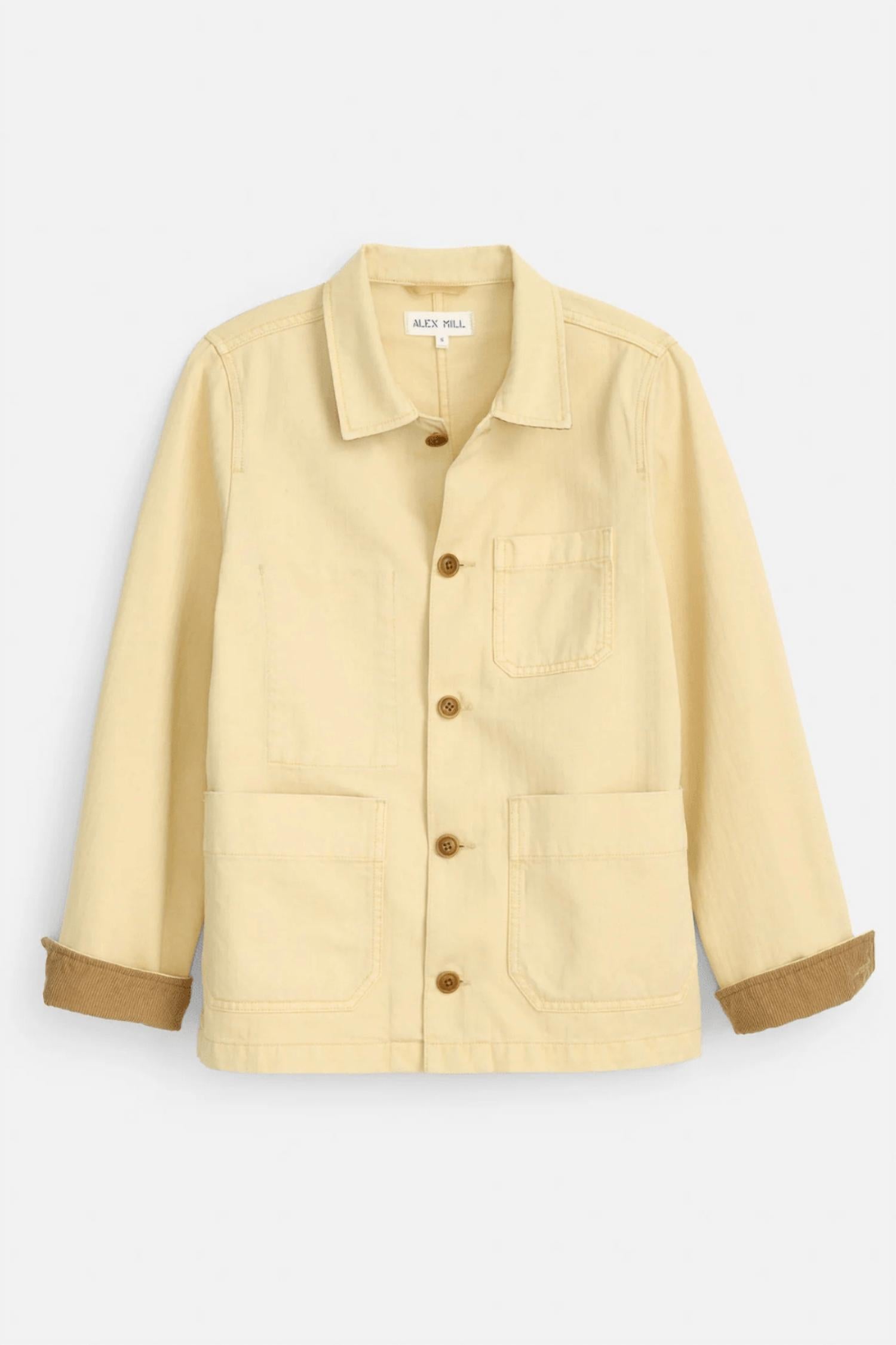 The ultimate cool-girl utility jacket. Introducing the Britt Work Jacket by ALEX MILL, a timeless piece that combines functionality with style. With its long sleeves and military-inspired herringbone cotton fabric, this jacket offers a relaxed fit perfect for any holiday party. The 26.5-inch length, corduroy collar, and Corozo button closure reflect its attention to detail, while the garment-dyed beige color adds a unique, rich tone. Care: Machine wash. Ideal for minimalist fall outlooks and Thanksgiving gatherings.