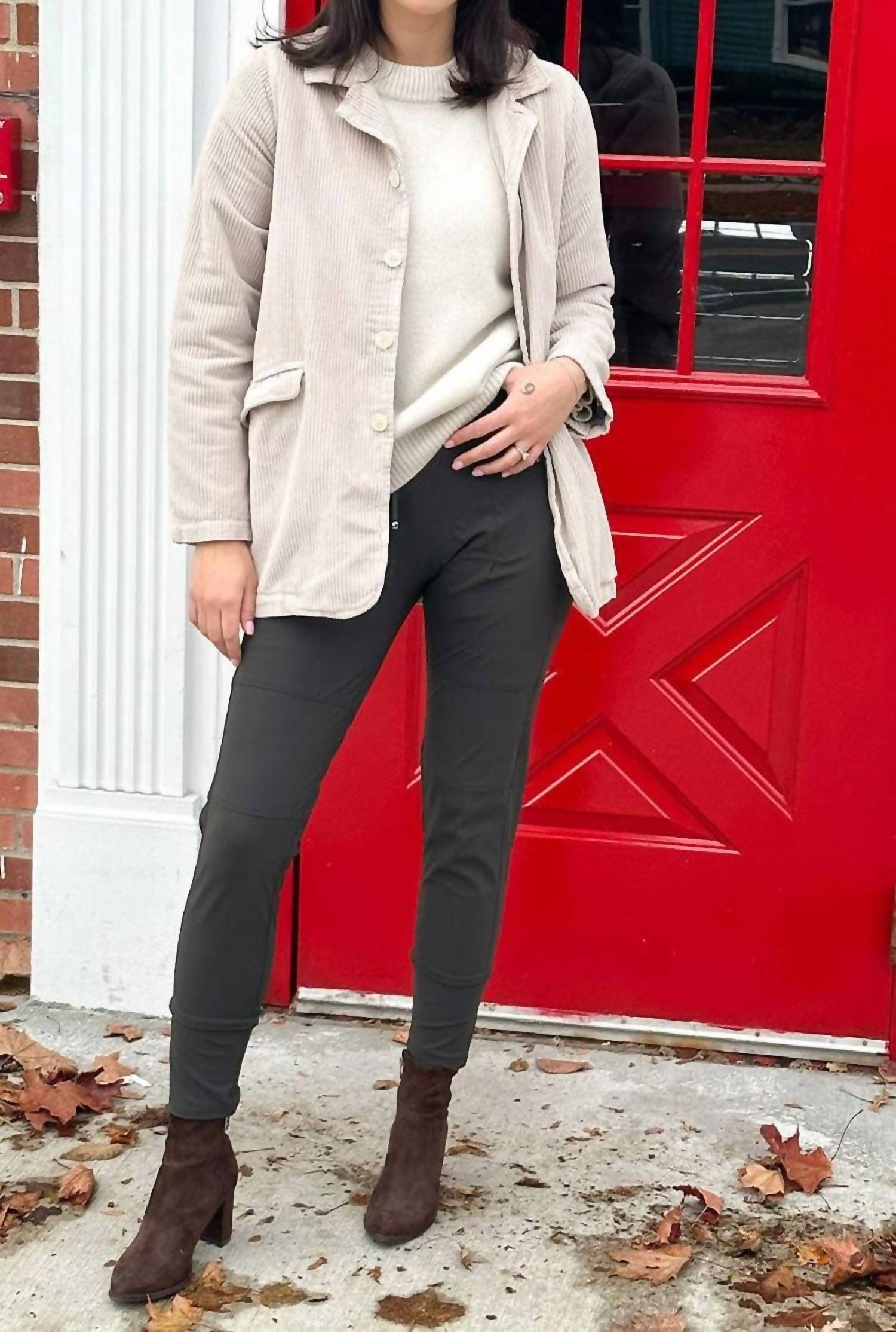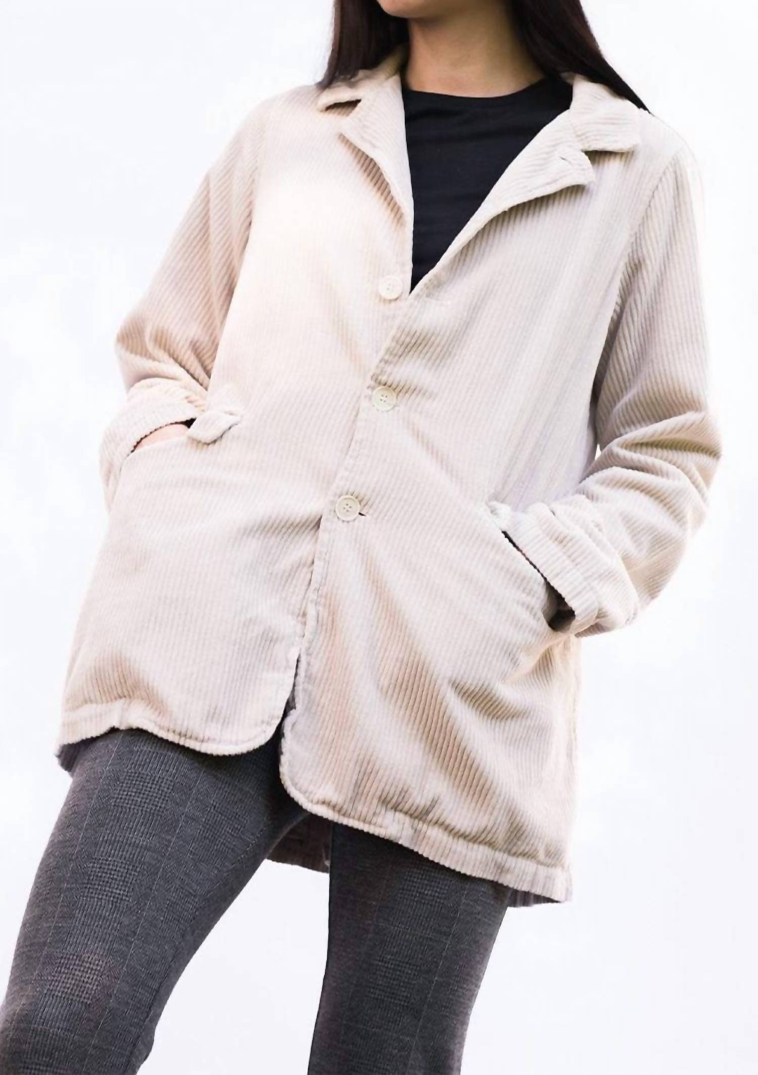The ultimate cool-girl utility jacket. Introducing the Regan Wide Wale Corduroy Jacket by CP Shades, a stylish addition to your wardrobe in a sophisticated oat hue. This utility jacket features long sleeves and is crafted from luxurious cotton corduroy, lined with complementary cotton flannel for added comfort. Designed with practical large front pockets and a classic collar, it secures easily with a button closure. Care instructions: Machine wash for easy maintenance.