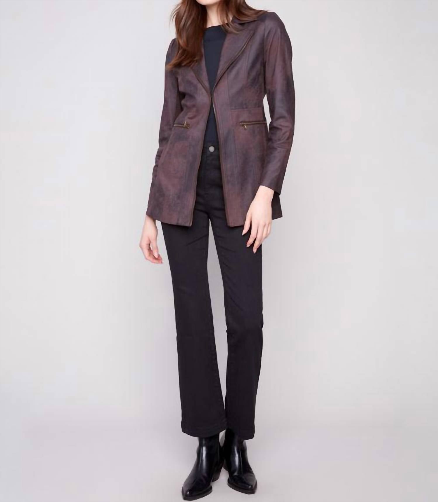 Charlie B - Vintage Texture Faux Suede Long Jacket