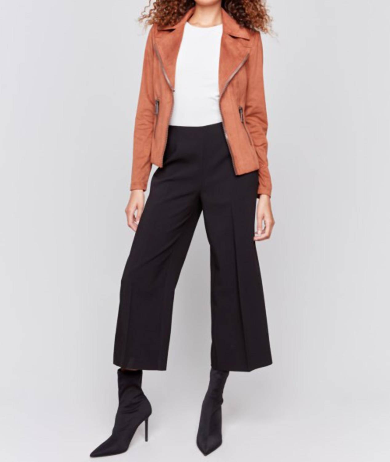 The coolest, most versatile utility jacket. Match it with your favorite pair of denim or throw it over any day dress. Presenting the Vintage Suede Moto Jacket by Charlie B in an alluring Terracotta hue, ideal for embracing the fall spirit with a nod to 90s fashion. This women’s utility jacket boasts edgy zipper accents and a classic tailored silhouette, crafted with 92% polyester and 8% spandex for a soft suede-like finish. Designed with faux pockets and a zip closure, it perfectly complements a turtleneck and dark denim for a chic travel ensemble.