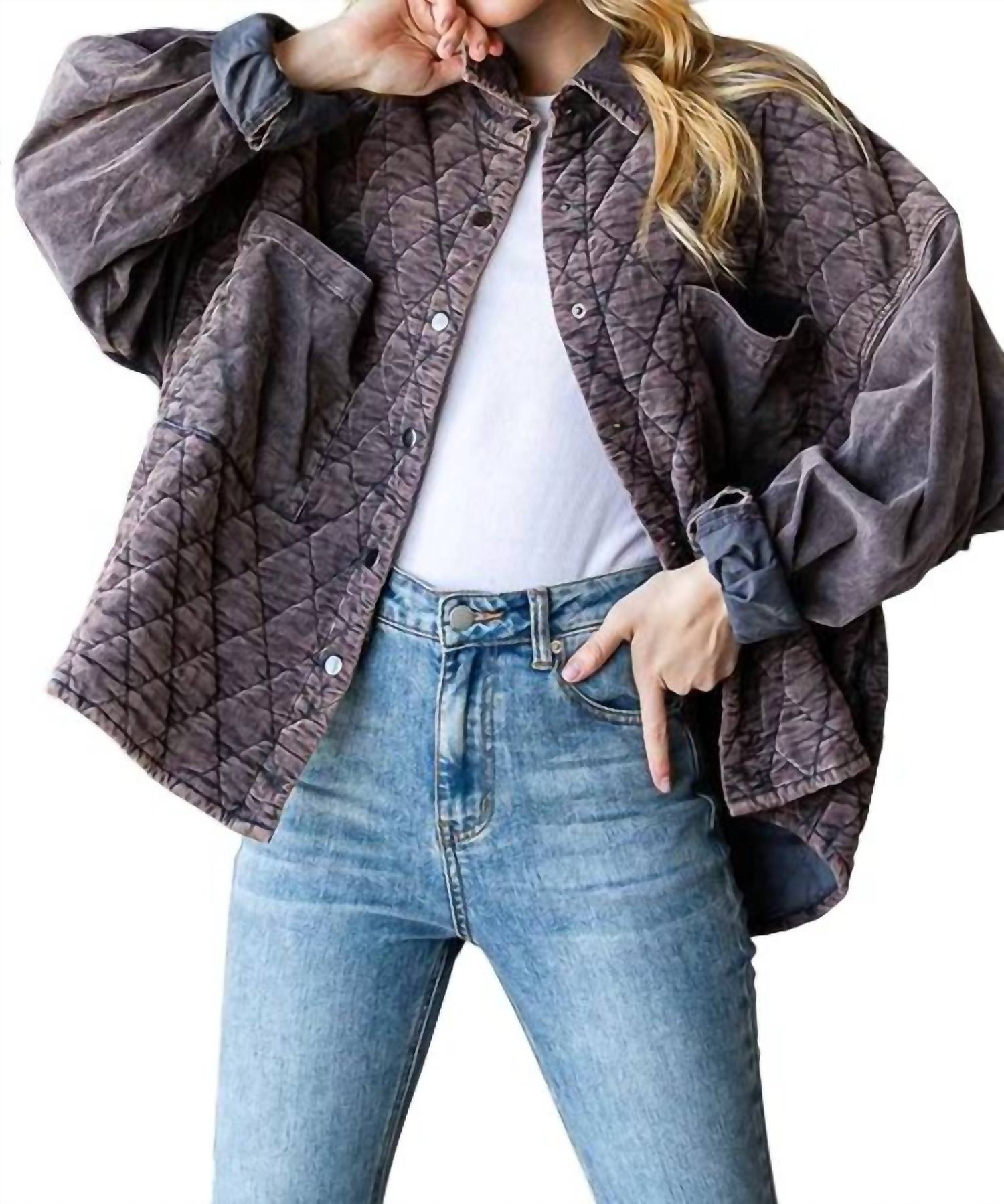 This utility jacket is the perfect combination of cool and feminine. Elevate your travel wardrobe with the Corduroy Snap Front Shacket by Oli & Hali, a must-have for Fall. This mineral washed utility jacket features a textured pattern with long sleeves, perfect for embracing the 90s fashion trend. Crafted with a self-composed 100% cotton exterior and fully lined with 100% rayon, it offers comfort and style. Closure: Snap closure. Ideal for seasonal layering, this shacket is the perfect choice for New Year's Eve celebrations and beyond.
