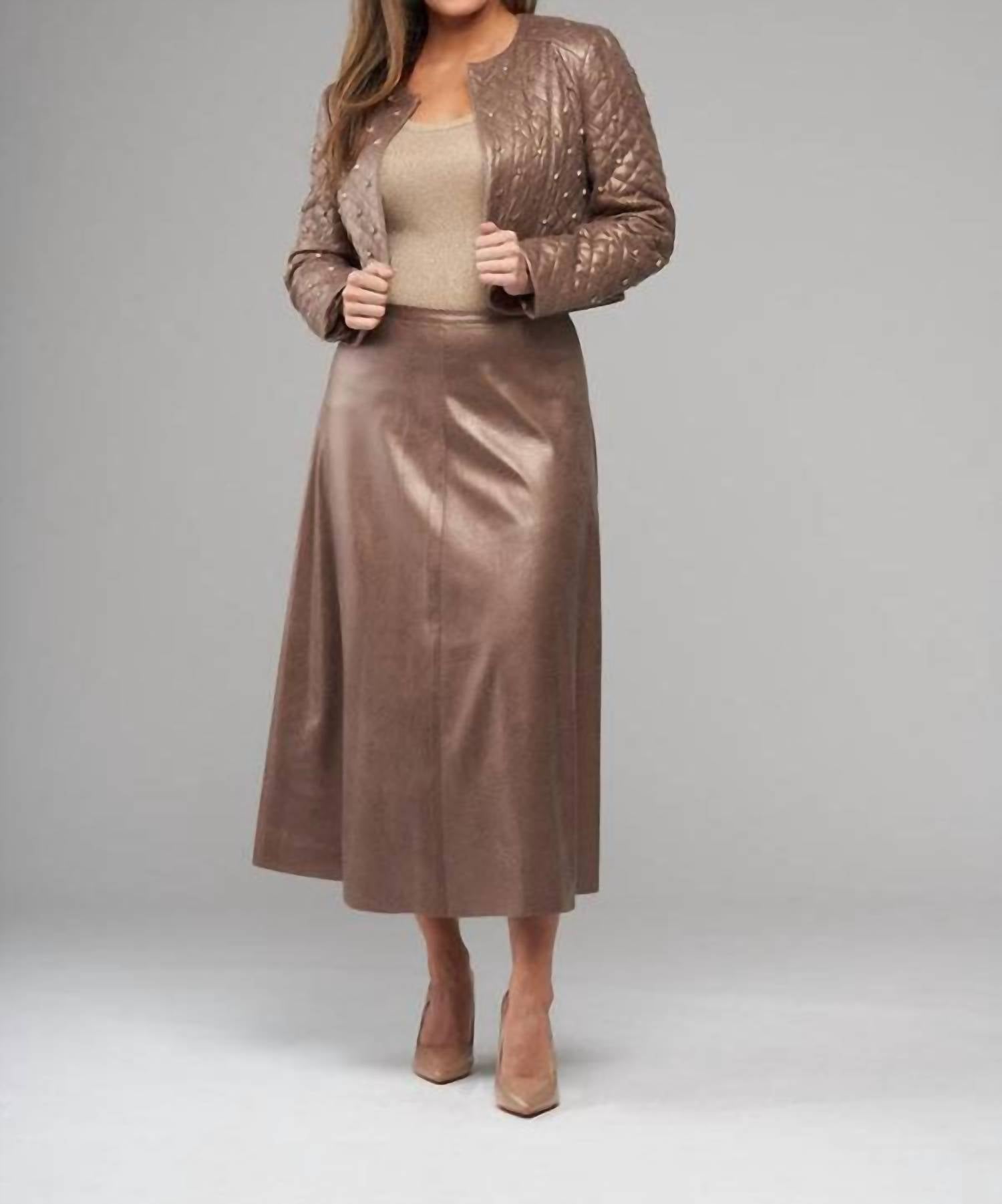 The varsity jacket is a trend that isn't going anywhere anytime soon and we are here for it! Elevate your outerwear with this cropped jacket, featuring diamond-pattern quilting accented with delicate studs for a subtle edgy touch. The structured neckline and open front create a sleek, modern silhouette that layers effortlessly over casual or statement outfits. Crafted from 90% polyester and 10% spandex, it’s designed for style and comfort and should be dry cleaned only.