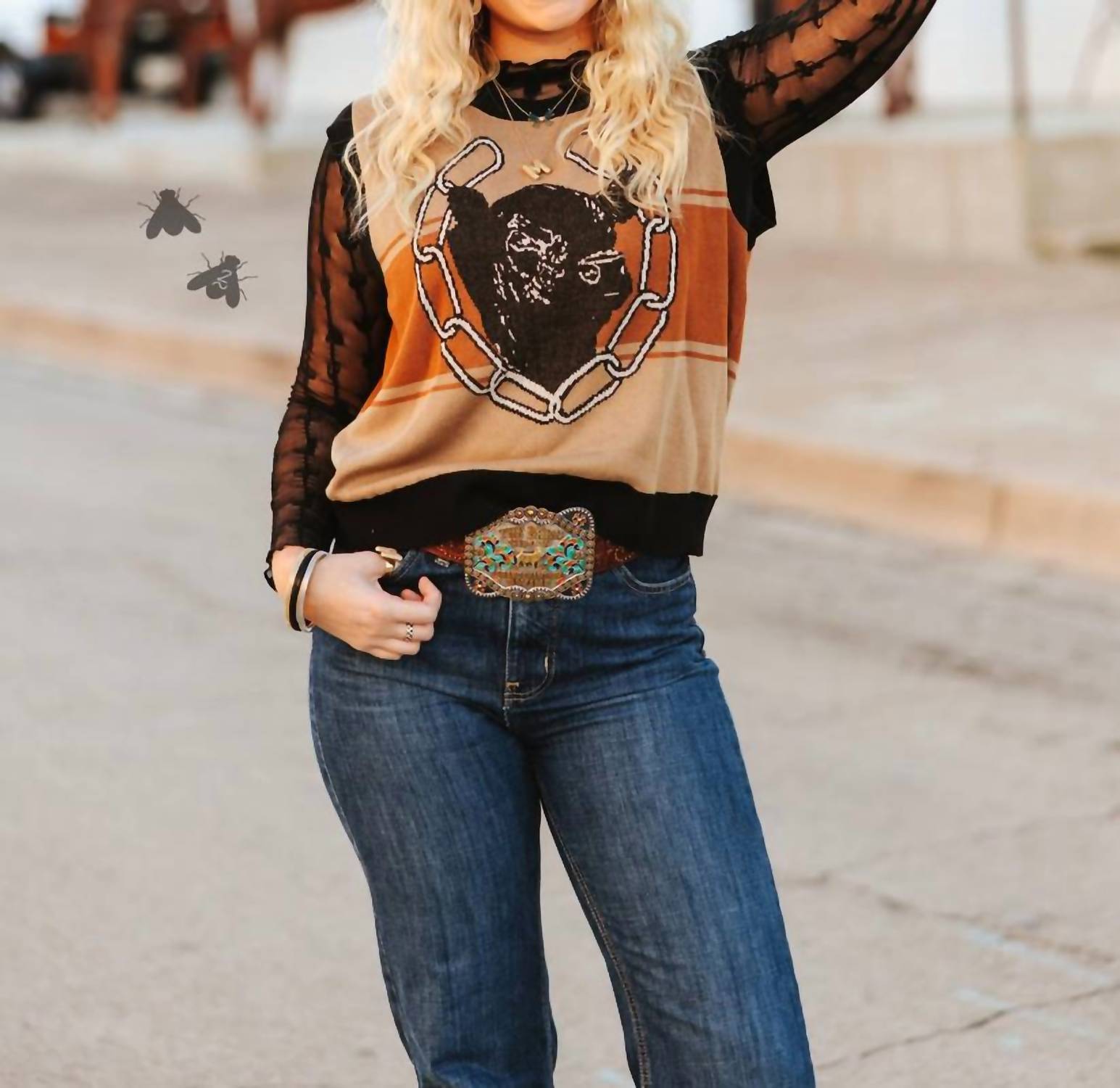 That extra layering piece you didn't know you needed! The 2FlyCo Bull Knit Vest in vibrant brown is your new vacation essential, promising both comfort and style. This sleeveless knit offers a graphic pattern and a flattering crewneck, effortlessly pairing with trending lace tops for a chic ensemble. Proudly crafted with a pull-on closure, this piece prioritizes ease and fashionable flair. Care instructions are not provided, allowing you to style confidently in warm weather.