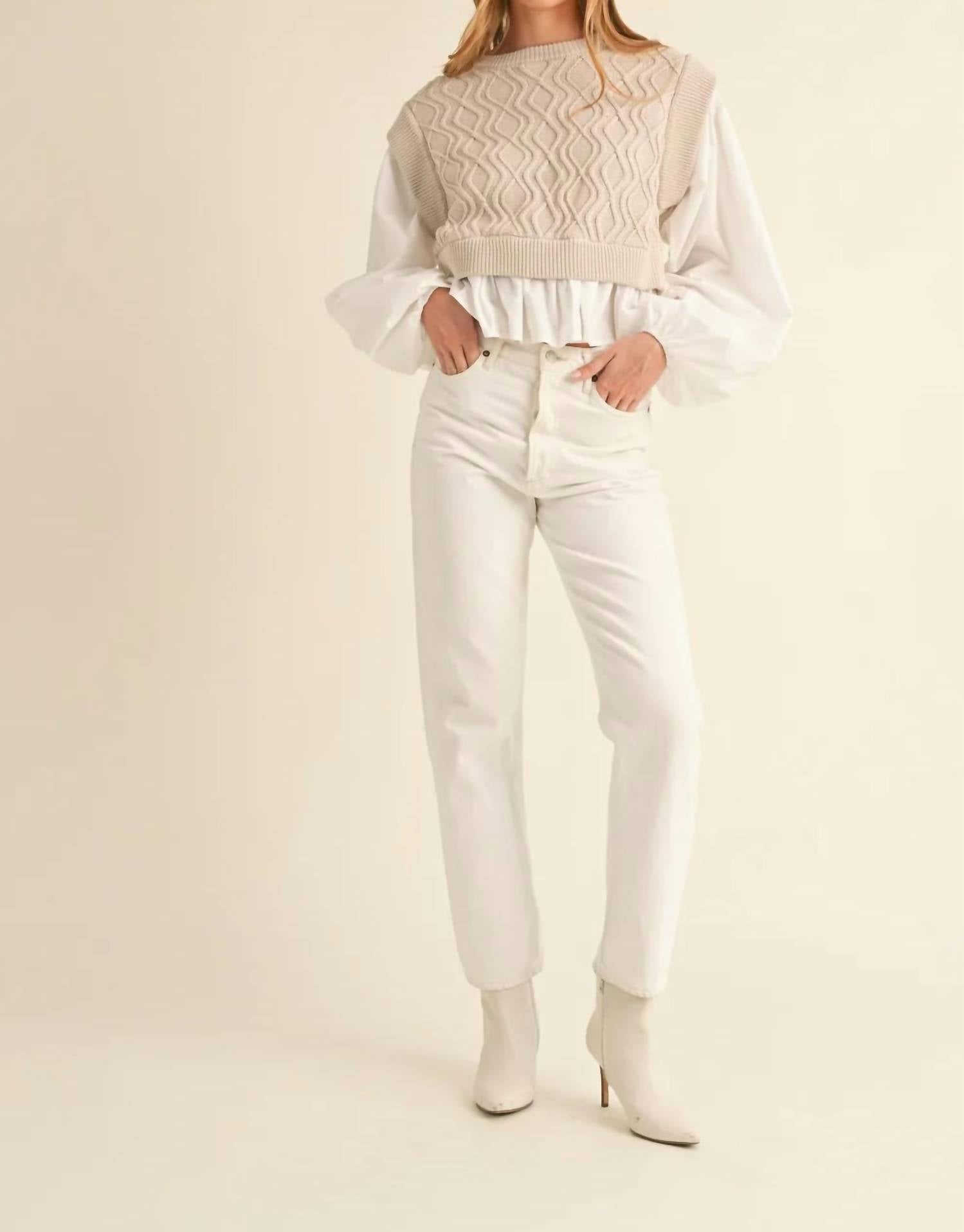 Mable - Sweater Vest With Blouse